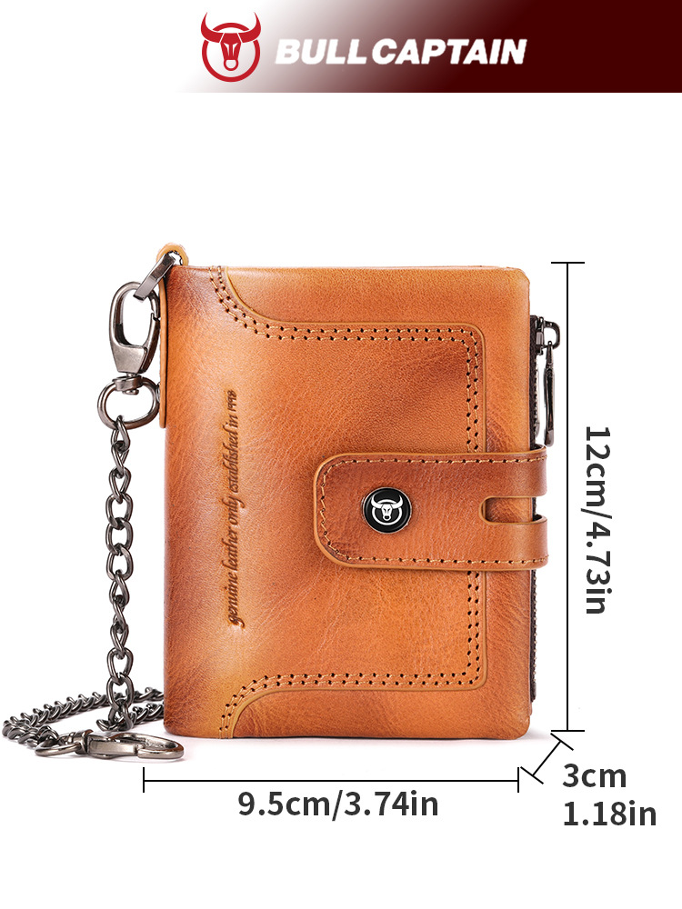 Captain Cow BULLCAPTAIN Zipper Button Leather Men's Wallet Vertical Multi-Card Holder Top Layer Cowhide Wallet