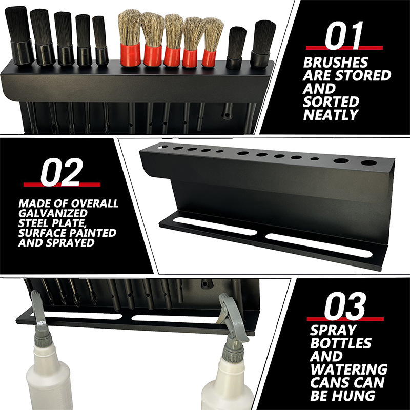 Car Detailing Storage Brush Holder 2-in-1 Spray Bottle Stand Rack Garage Detailing Shop Tool Organizer