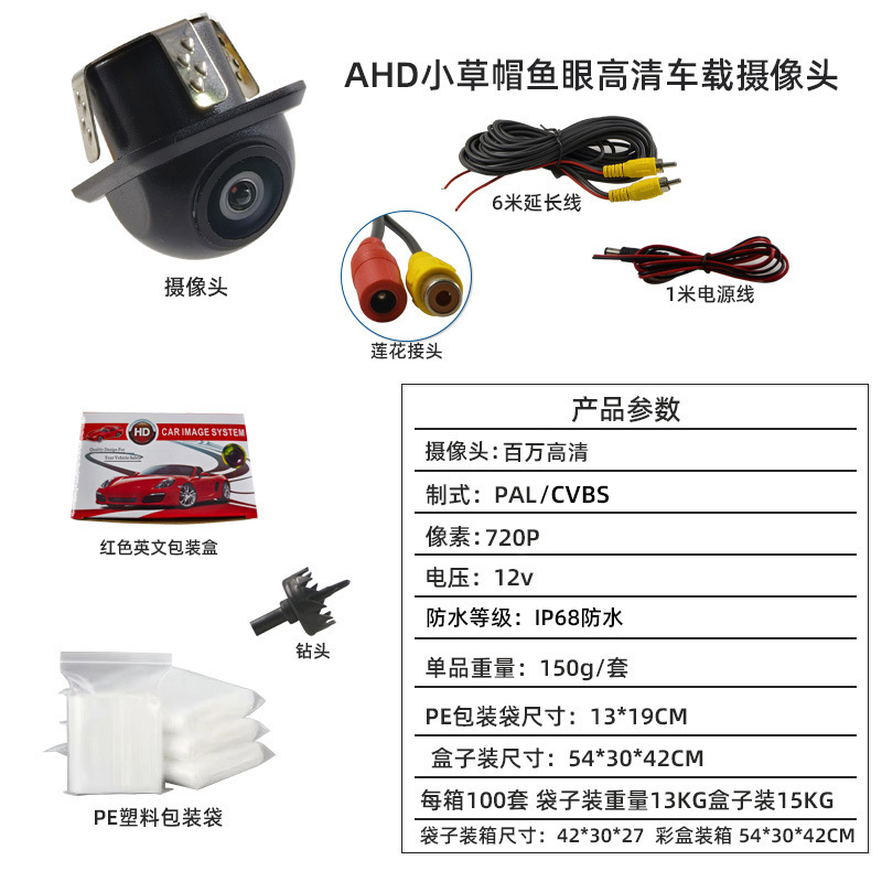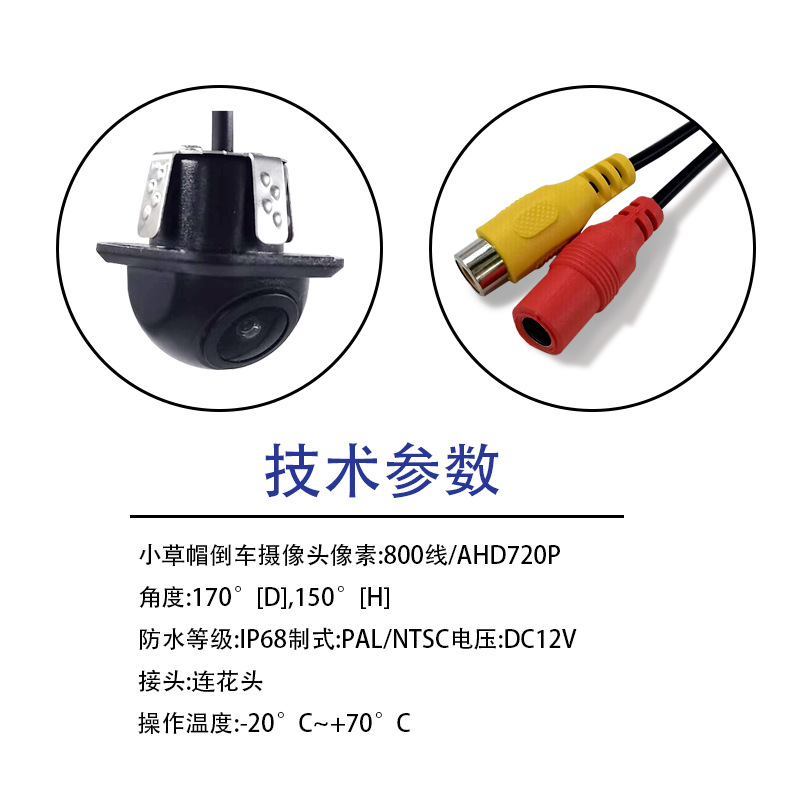 Car reversing camera small straw hat HD AHD three control switching CCD fisheye camera HD night vision wide angle