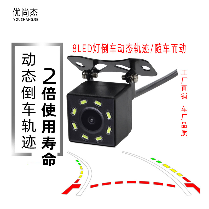 Car reversing dynamic track car camera 8LED light HD night vision navigation car rear view image