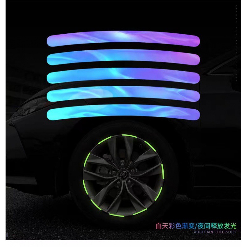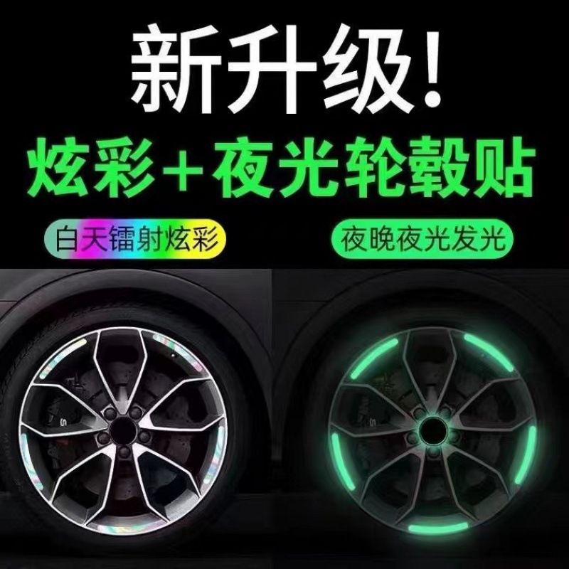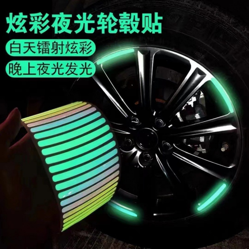 Car wheel reflective colorful laser motorcycle electric car stickers personalized creative warning luminous hub stickers