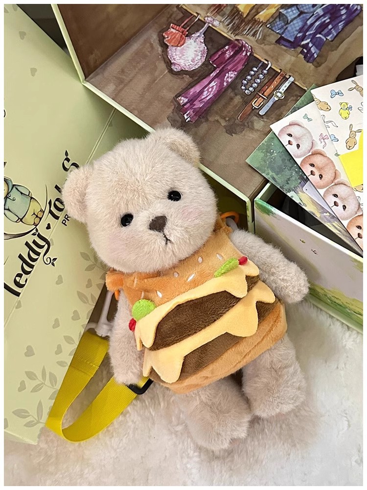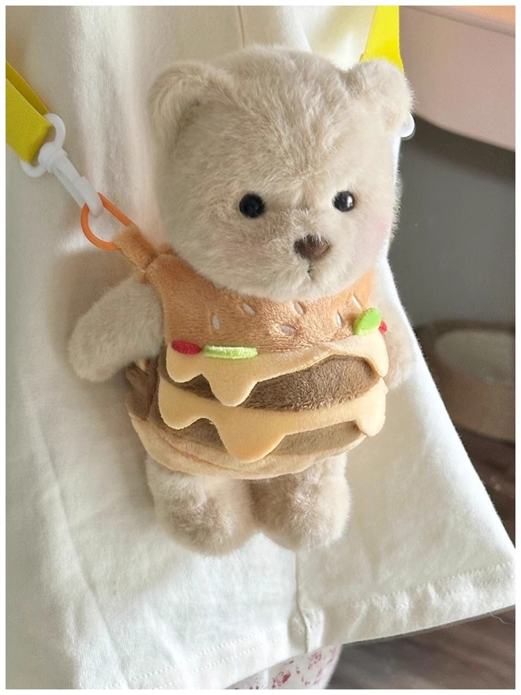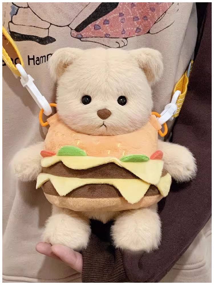Cartoon Plush Doll Bag Burger Potato Chips Bag Bear Doll Bag Grasp Doll Bag Doll Shoulder Crossbody Women's Bag