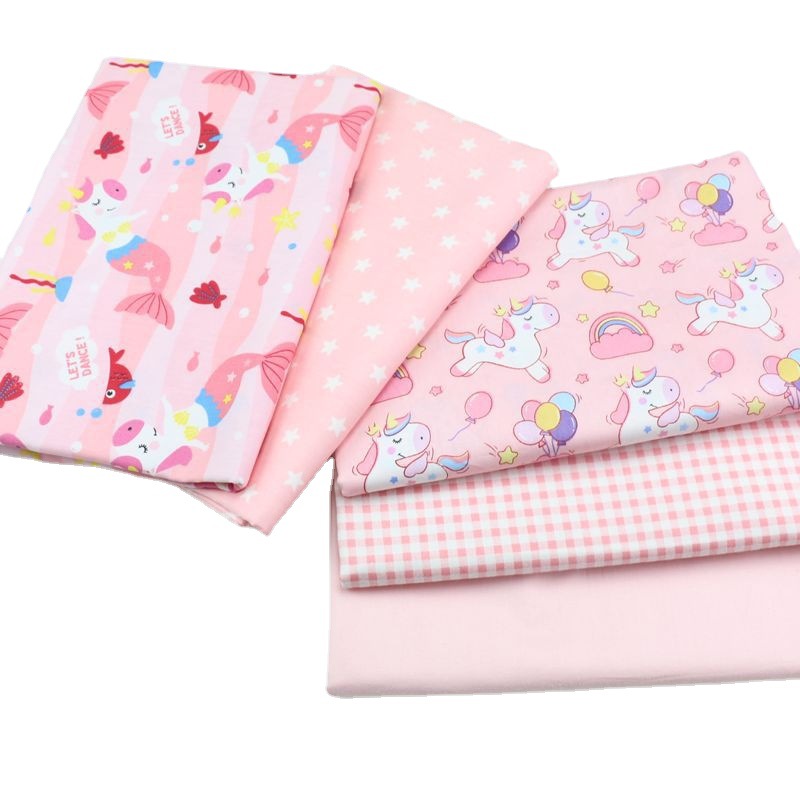 Cartoon pony mermaid printed fabric wholesale children's quilt cover sheets three-piece cotton fabric woven fabric