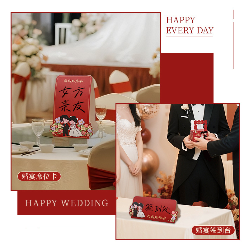 Cartoon Wedding Sign-In Table Seat Card Bride Engagement Wedding Main Table Vip Seat Card Guest Family and Friends Seat Table Number