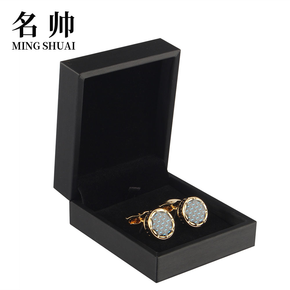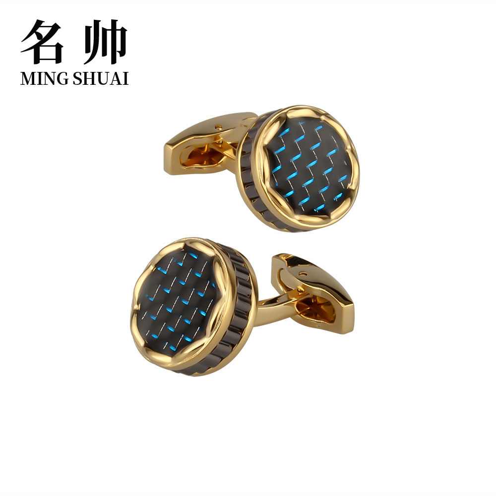 Casual Business Men's French Cufflinks and Cufflinks Brand Copper Material Carbon Fiber Round Plated Real Gold Cufflinks Wholesale
