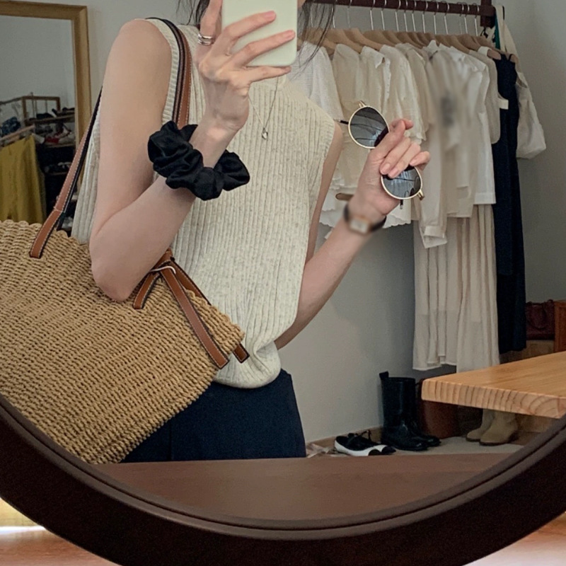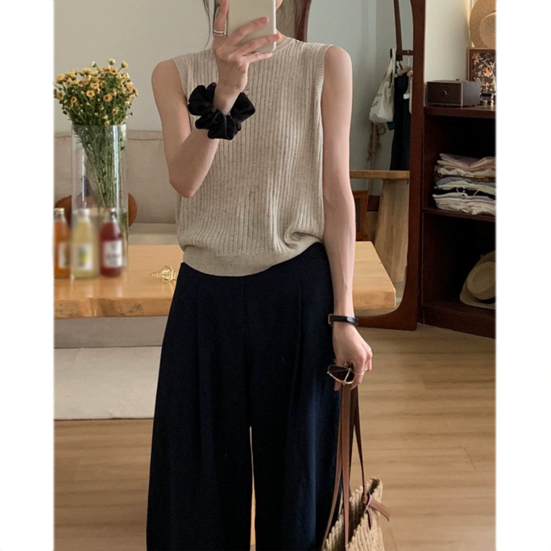 Casual Style Apricot Cross Knitwear for Women Summer 2025 New Design Backless Style Slimming Look Sleeveless Top
