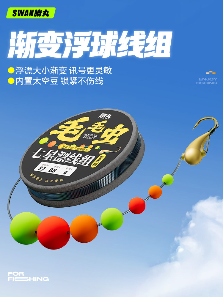 Caterpillar Seven-Star Floating Copper Head Hook Line Set Fishing Line Main Line Wild Fishing Traditional Fishing Finished Product Does Not Block the Mouth