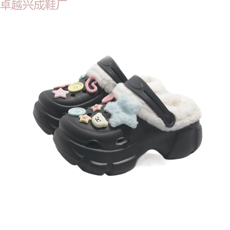Cave Shoes Winter fleece-lined Detachable Women's Autumn and Winter Girls High Heel Cute Student Non-slip Cotton Slippers Winter fleece-lined
