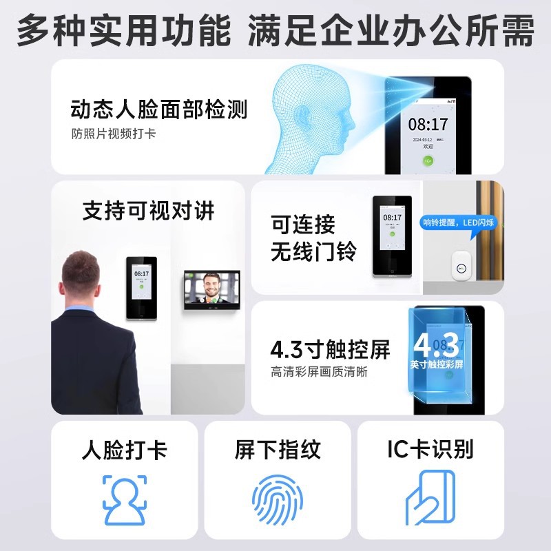 Central control ZKTeco video intercom time attendance access control machine ZFace1300 office fingerprint face access control system