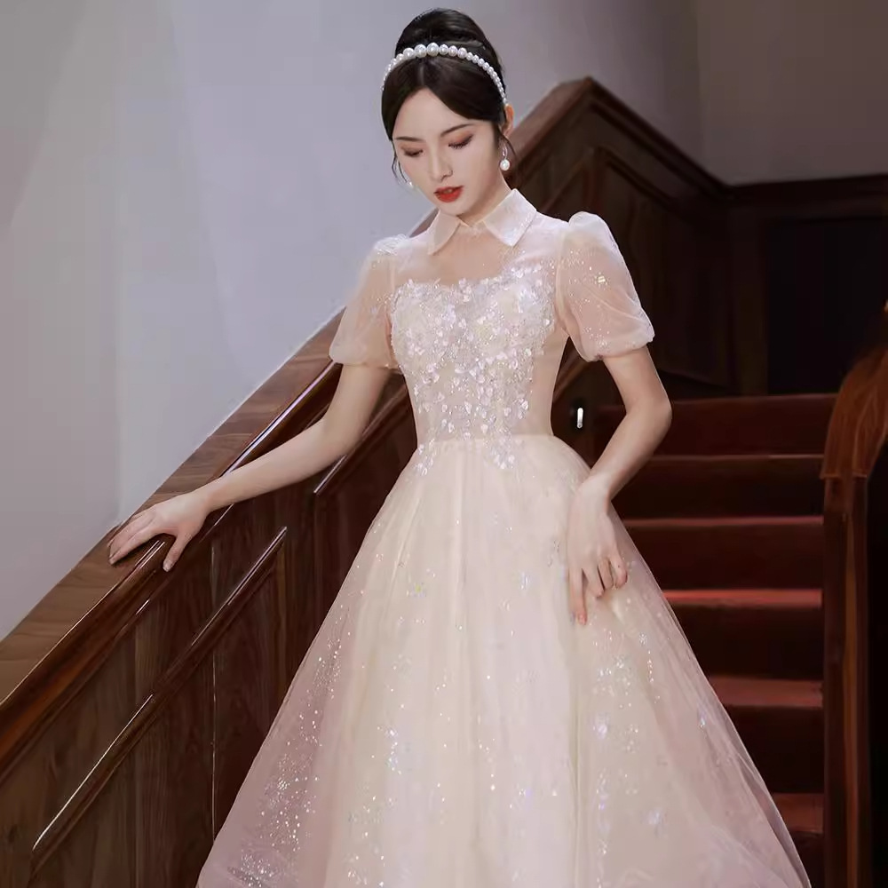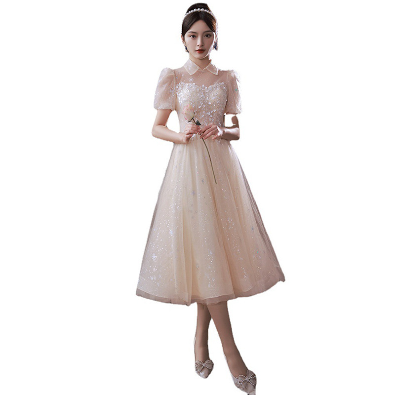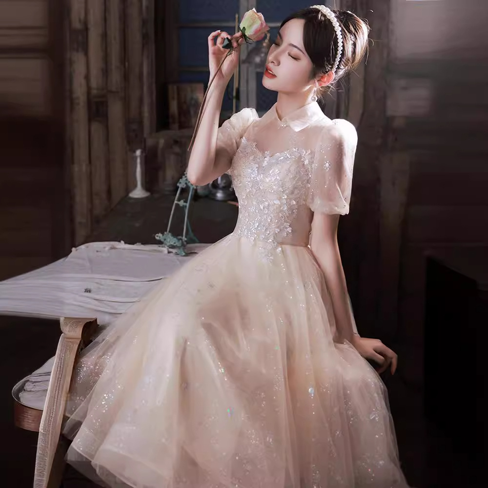Champagne-Colored Dress for Women, 2026 New Style, Elegant for Banquets, Engagement Dress, Birthday Dress, Petite Evening Dress