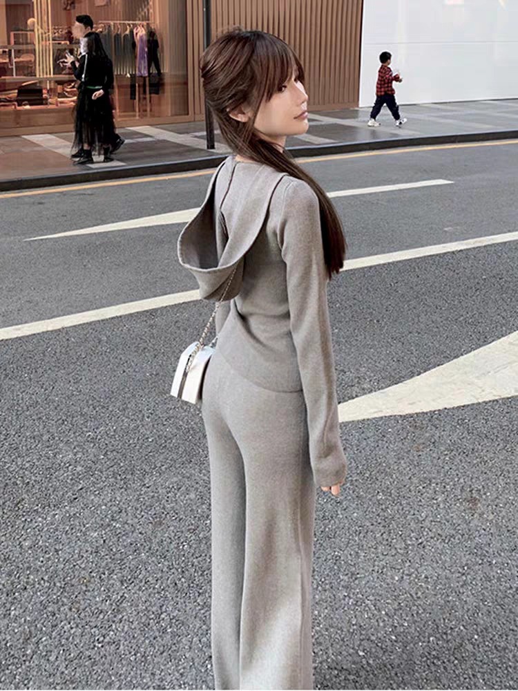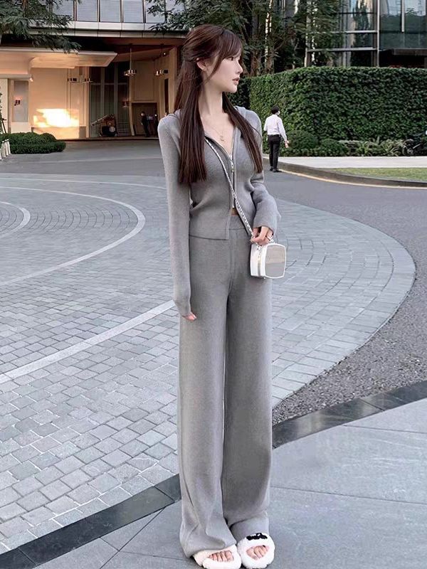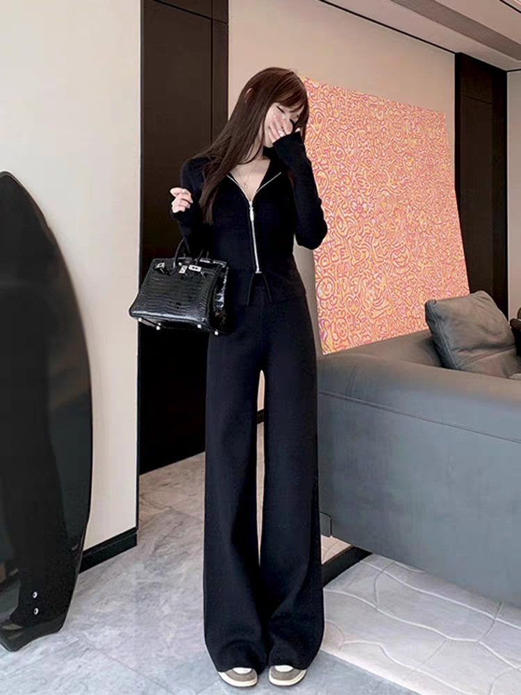 Chanel style wide-leg pants sweater sports suit women's autumn and winter clothes with a set of high-grade small Western clothes two-piece suit
