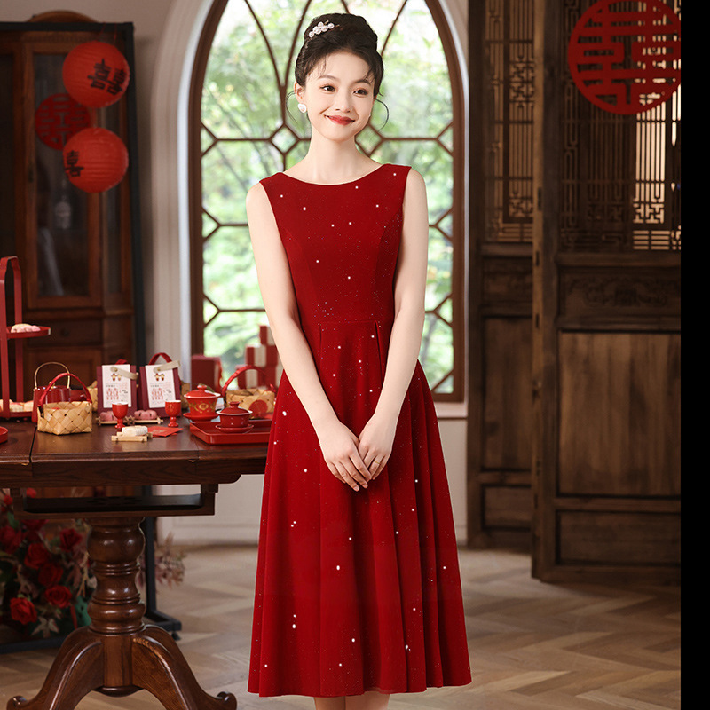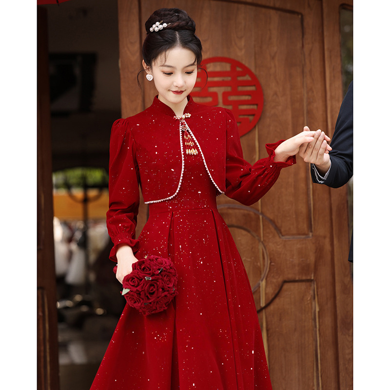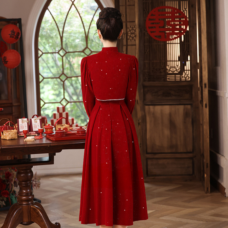 Cheongsam Toast Wear 2025 New Bridal Home Casual Wear High-End Engagement Red Skirt Suit Wedding Evening Dress for Women