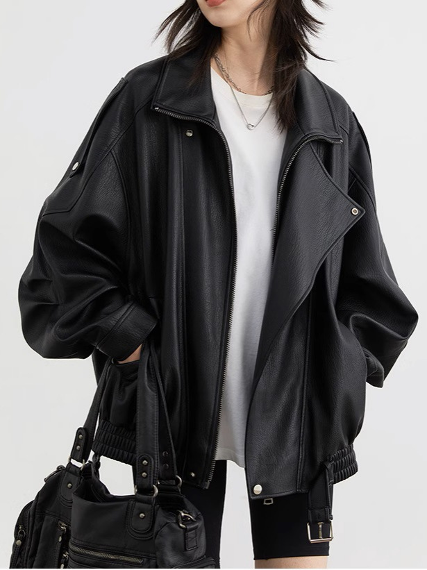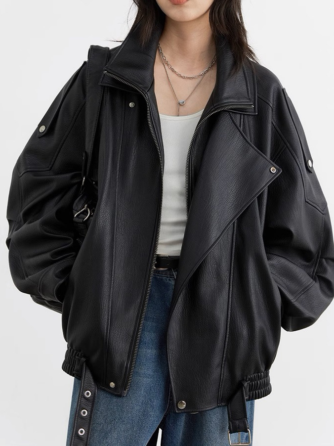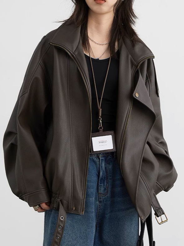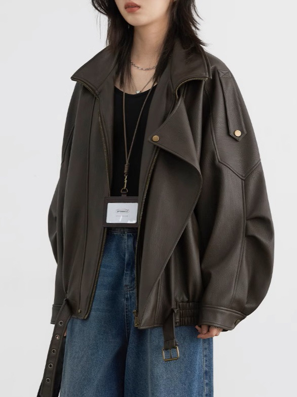 CHICVEN "roaming autumn" autumn new heavy industry retro collar motorcycle leather jacket PU jacket jacket