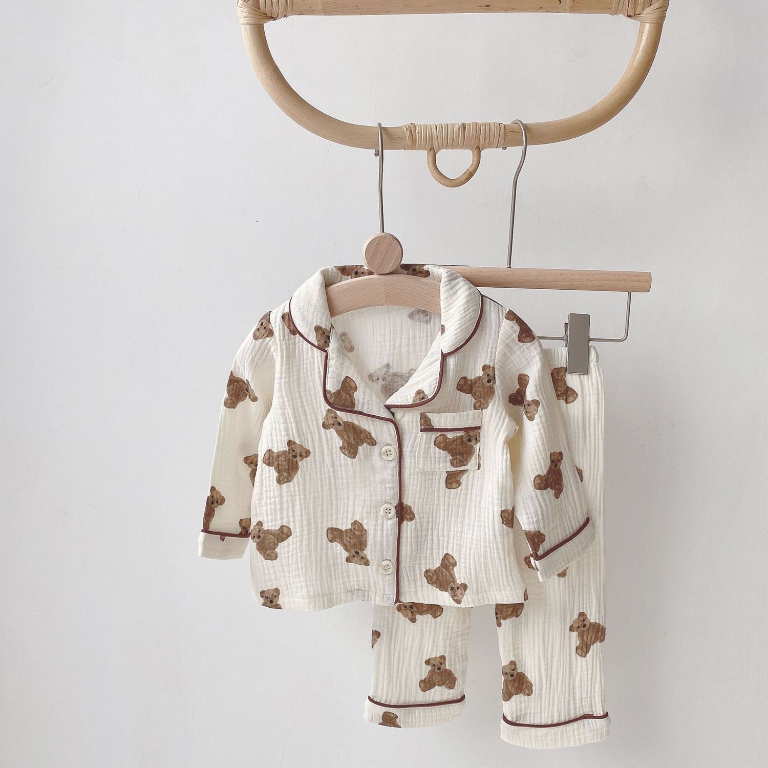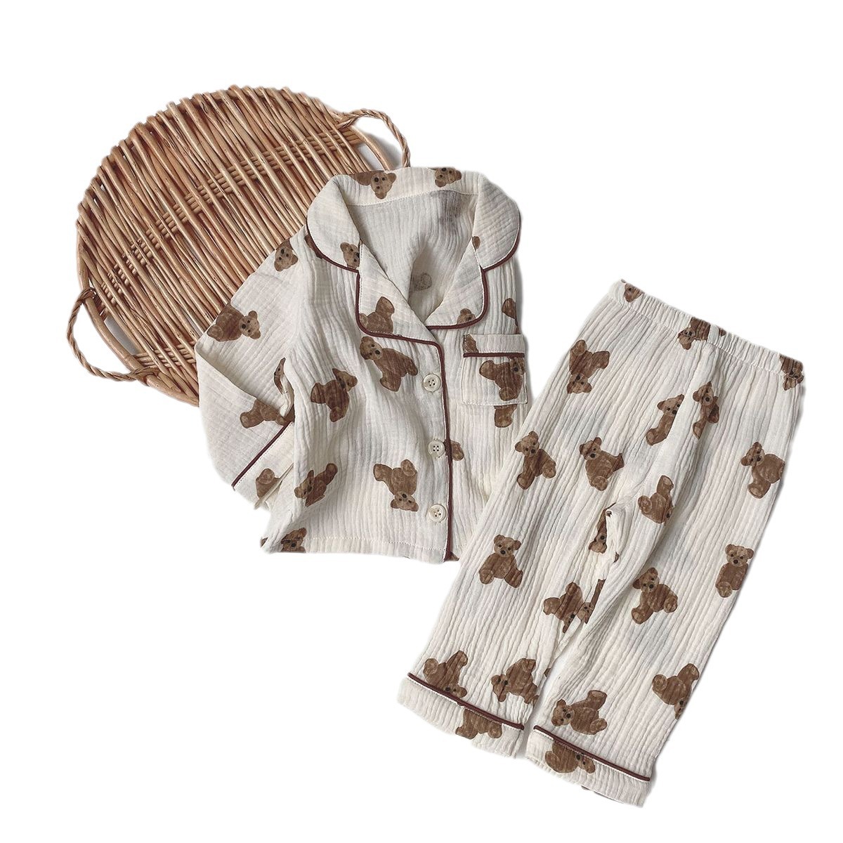 Children's and Girls' Pajamas Spring and Autumn Long-sleeved Trousers Women's Bao Meng Bao Bear Split Cardigan Autumn Clothes Baby Two-piece Suit