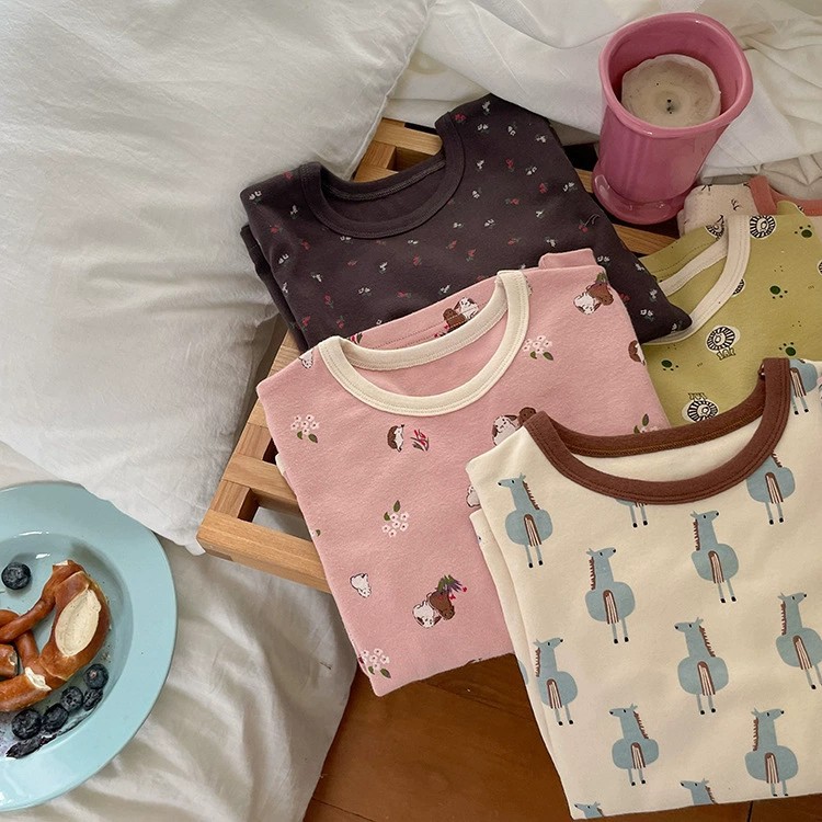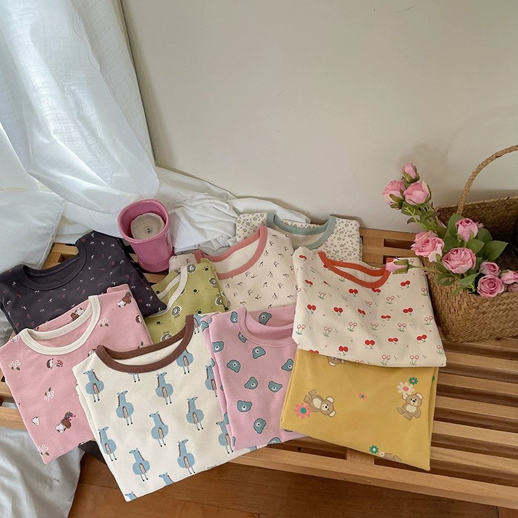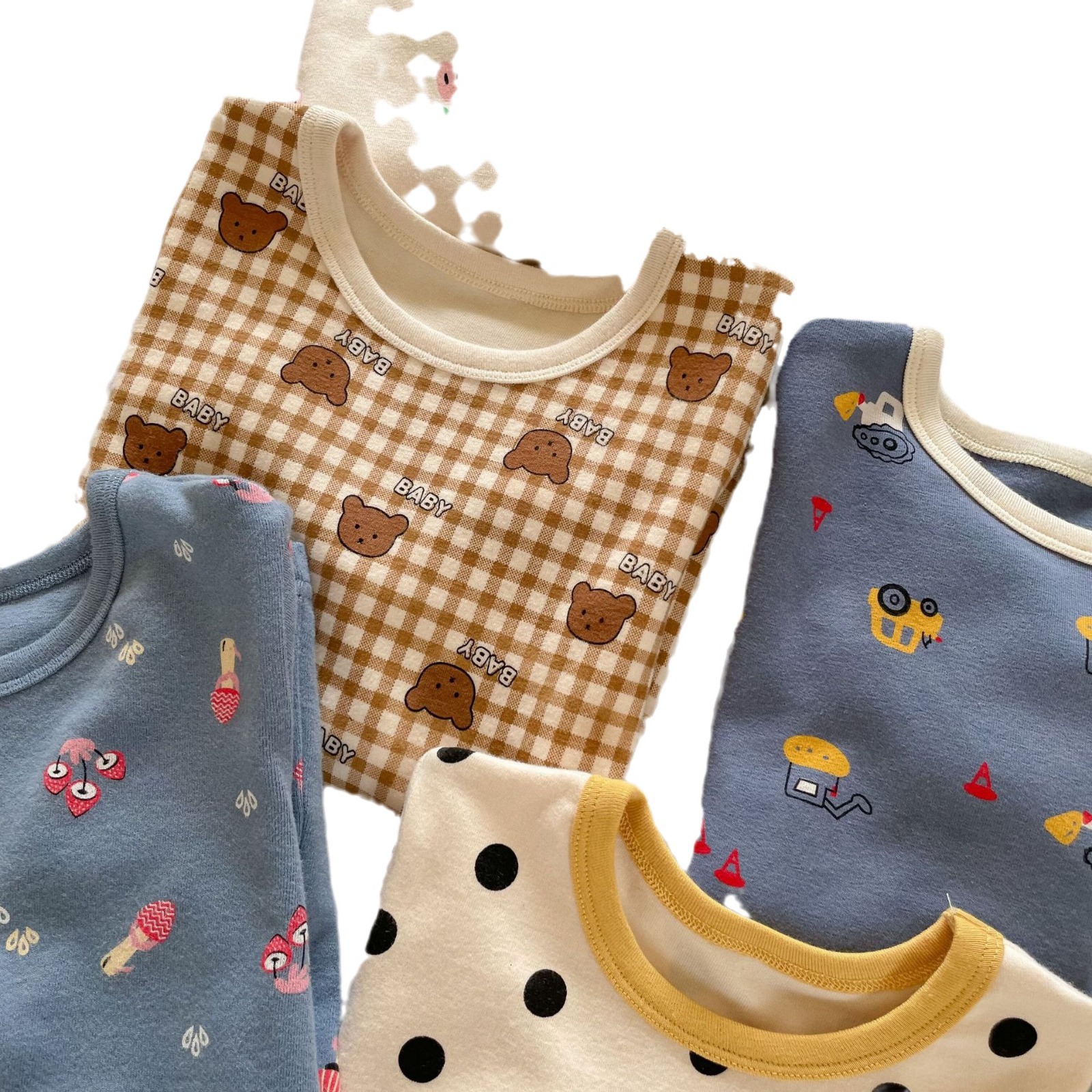 Children's Autumn and Winter Class a Pajamas for Boys and Girls Wool Pull-Up Cartoon Thermal Intimates Baby Comfortable Home Clothes Set