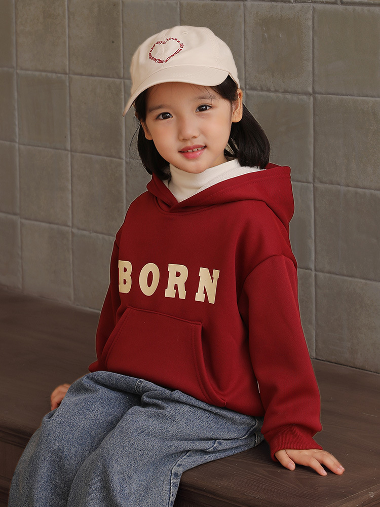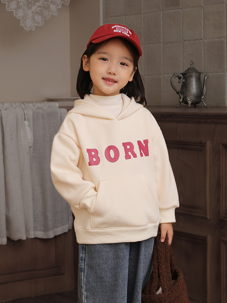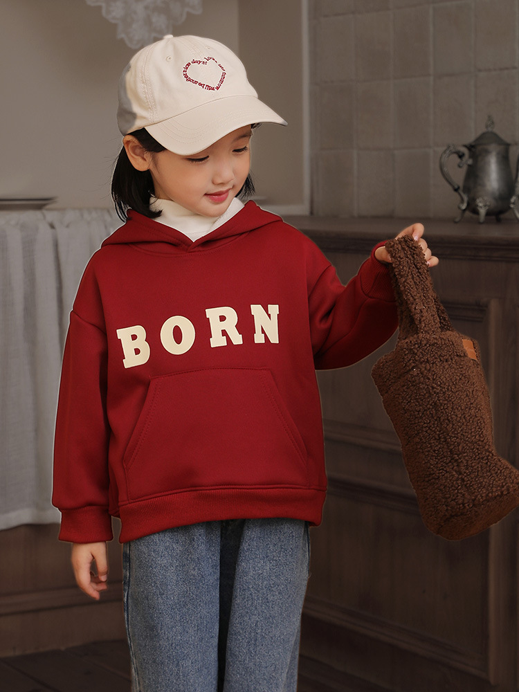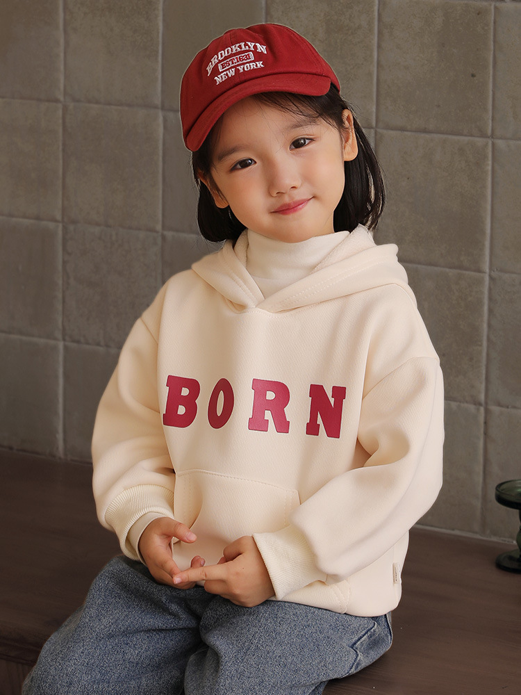Children's Autumn and Winter Velvet Hooded Sweatshirt for Girls, Velvet Thickeneded Warm Top, Baby Boy's Letter Bottoming Shirt