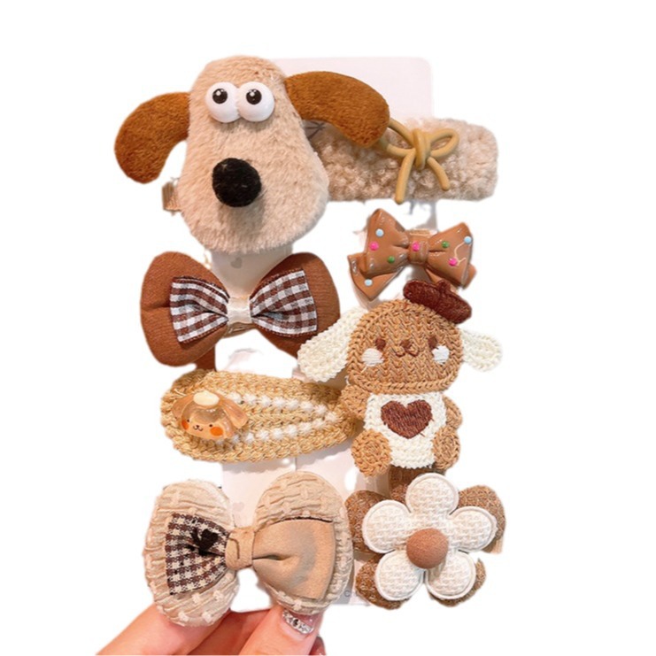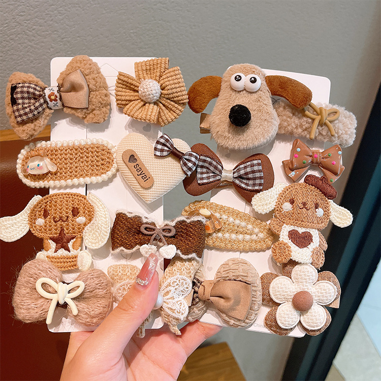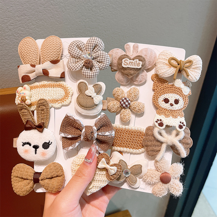 Children's Autumn and Winter Milk Coffee-Colored Fabric Knitted Hair Clips, Cute Hair Root Fringe Bangs, Little Girl Cartoon Hair Accessories Wholesale