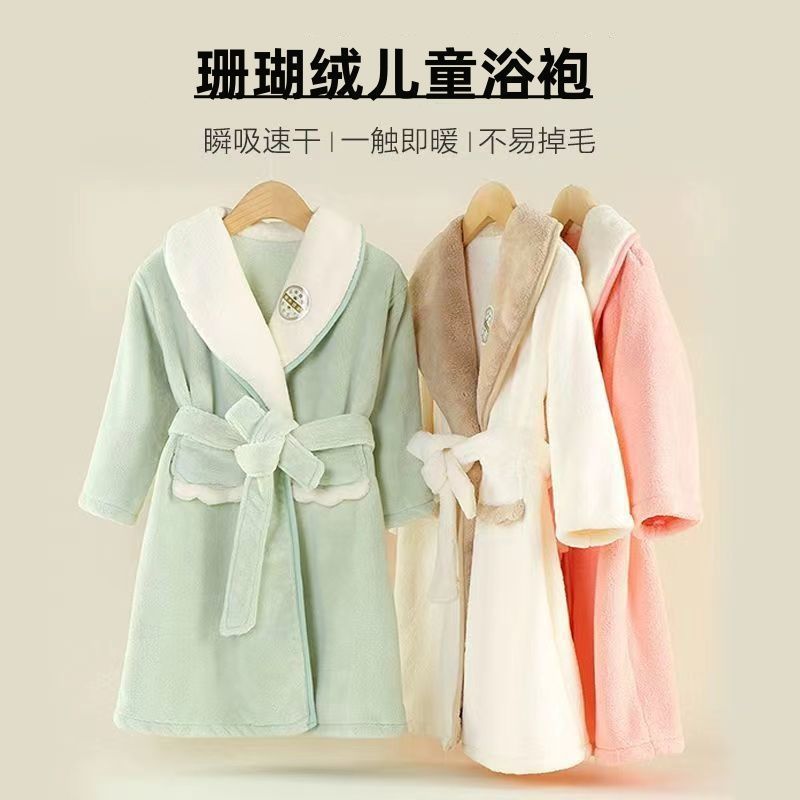 Children's Autumn and Winter Nightgown, Absorbent and Quick-Drying Bathrobe, Medium and Large Kidsren's Warm Bathrobe, Boys and Girls, Sleeved Coral Velvet Bath Towel