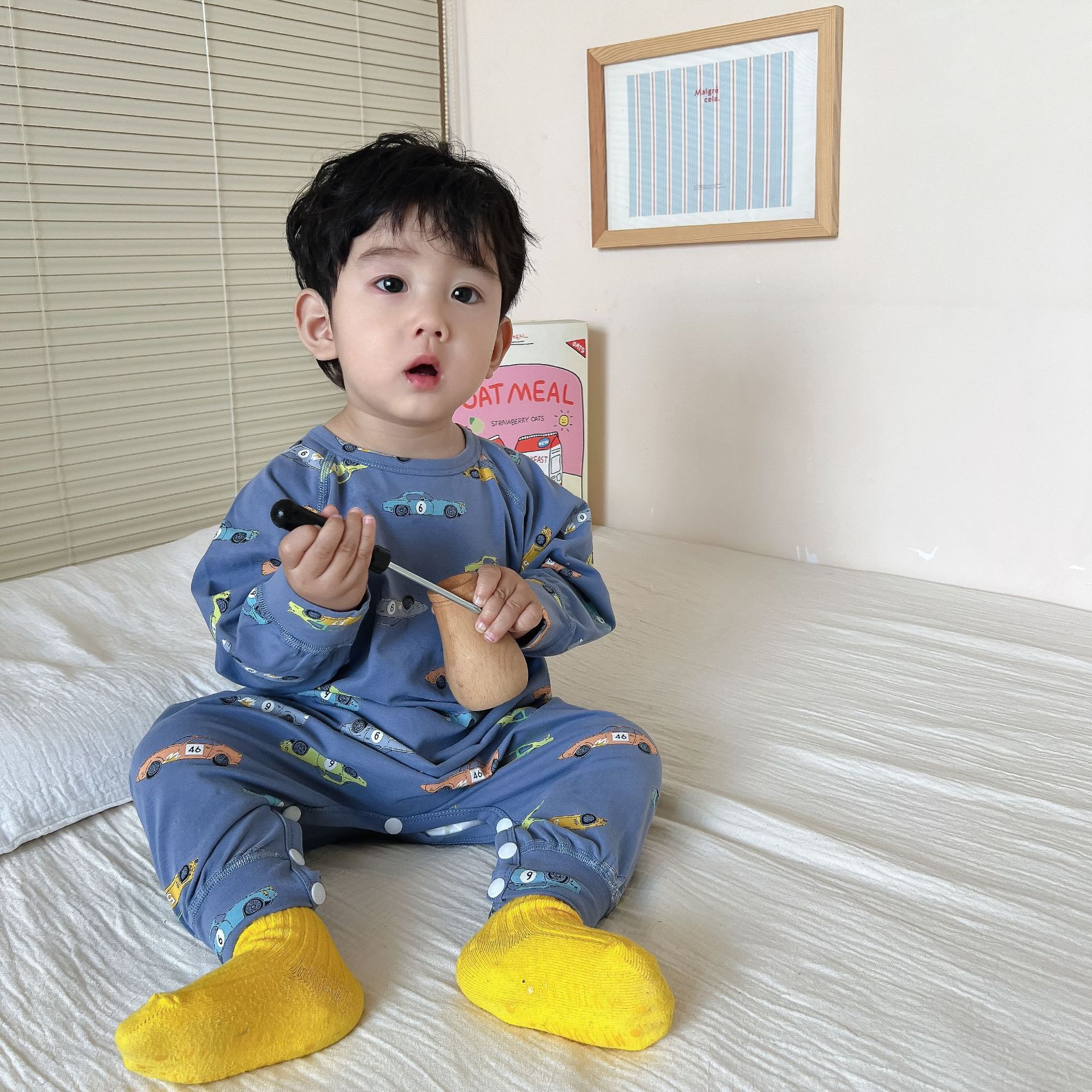 Children's Boneless Jumpsuit 2024 Spring and Autumn New Boys and Girls Anti-kick Long-sleeved Pajamas Children's Baby Home Clothes