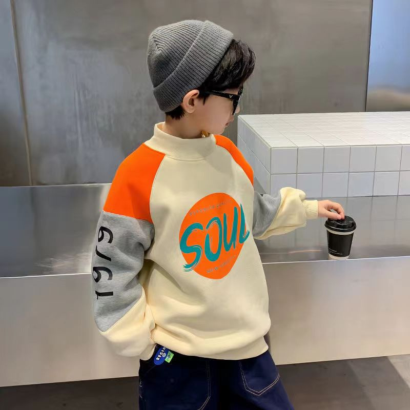Children's clothing boys autumn and winter fleece-lined sweater base shirt small and medium-sized boys long sleeve thick coat anti-season wholesale tide