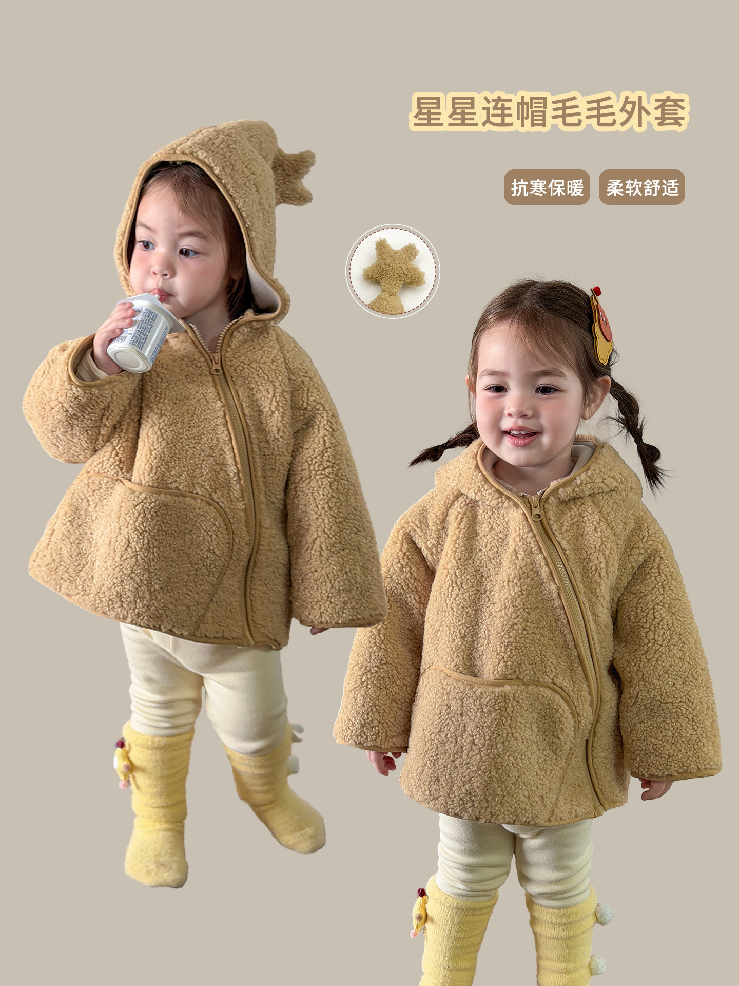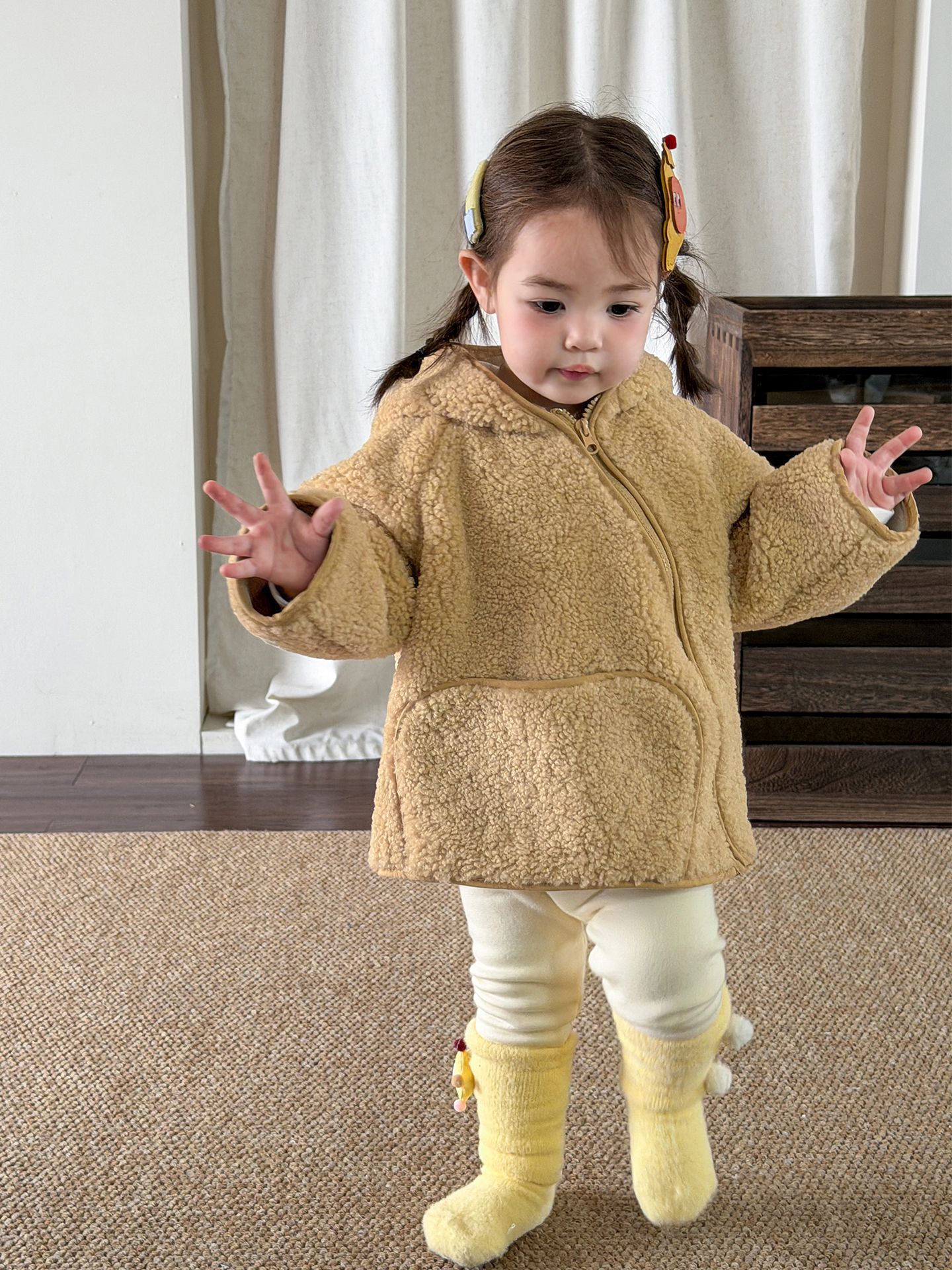Children's Clothing for Girls, 2025 Thickened Stylish Lamb Wool Fur Integrated Winter Coat for Baby Girls