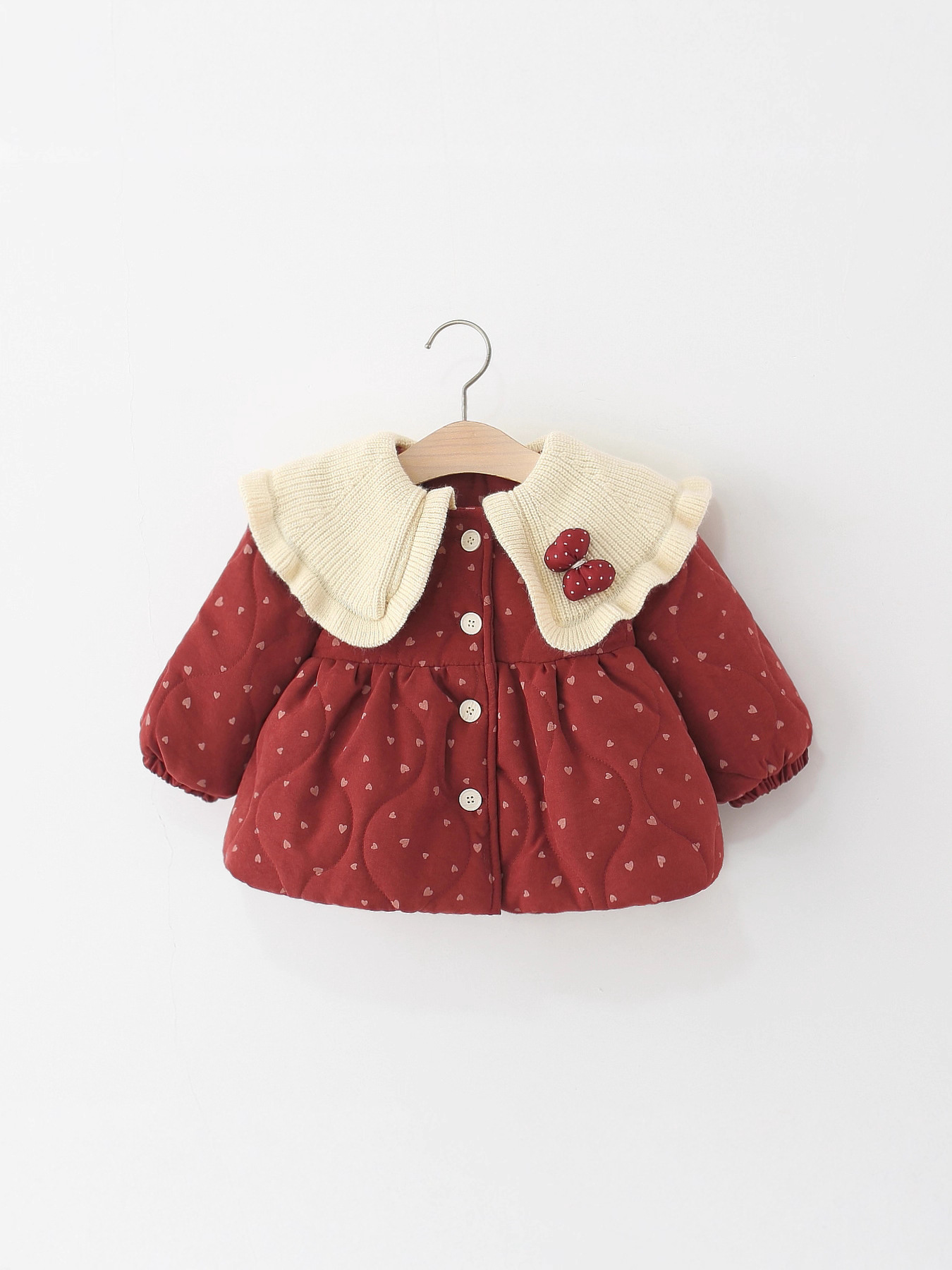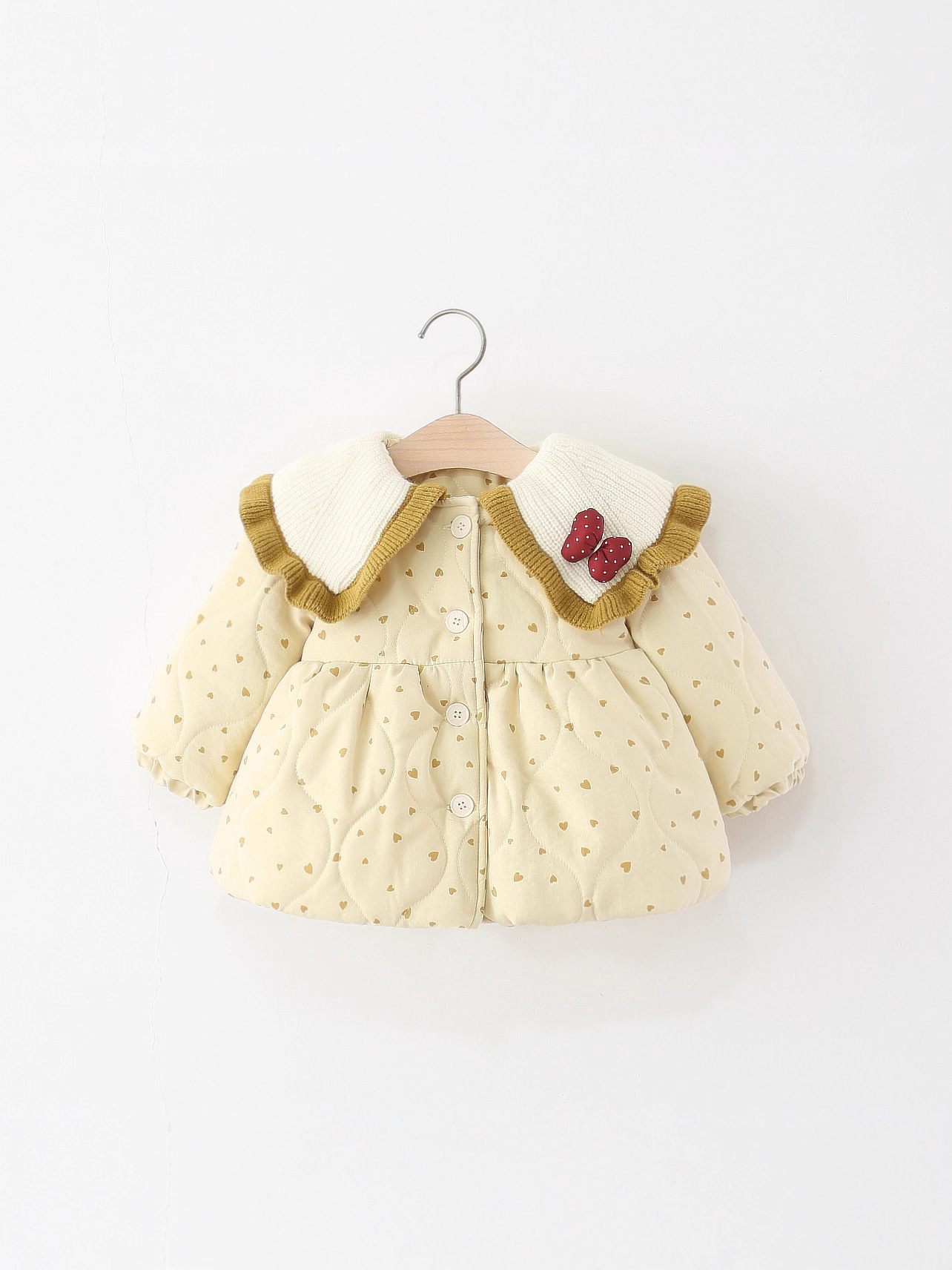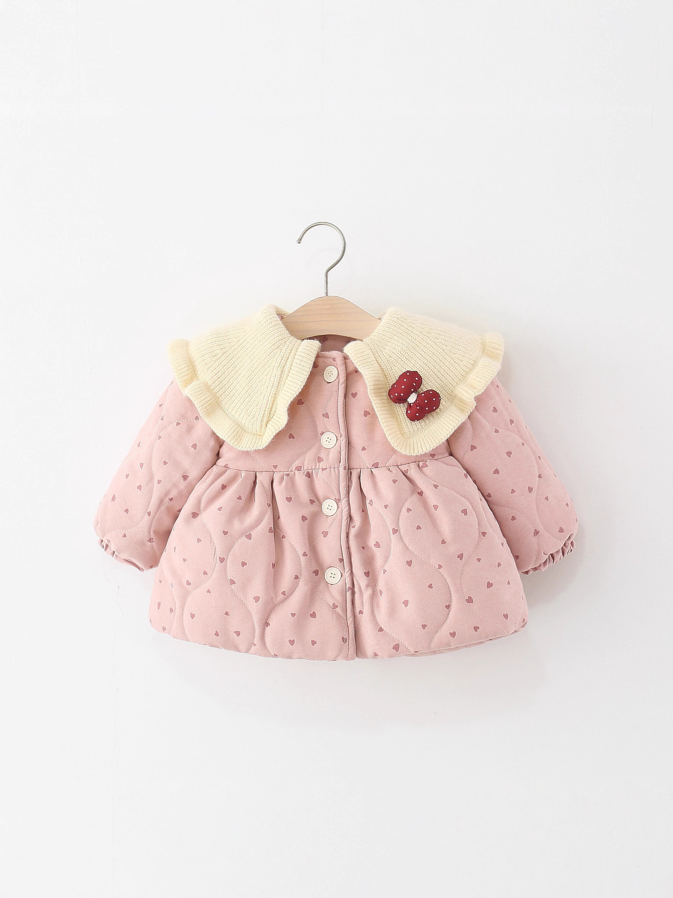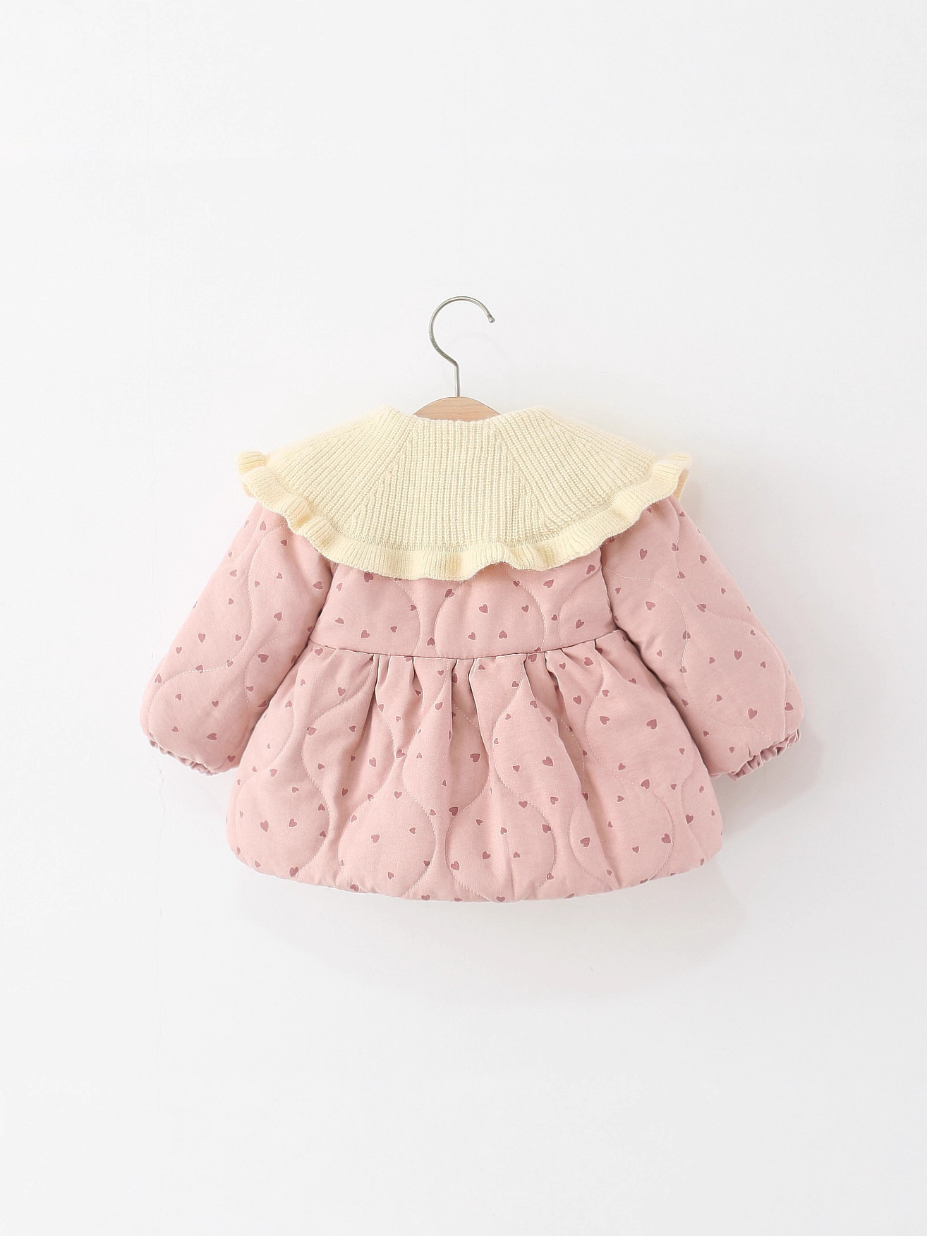 Children's Clothing, Girls' Cotton Outwears, Winter Baby Girls' Woolen Lapels, Heart Quilted Cotton Outwears, Kidsren's Cotton-Padded Jackets