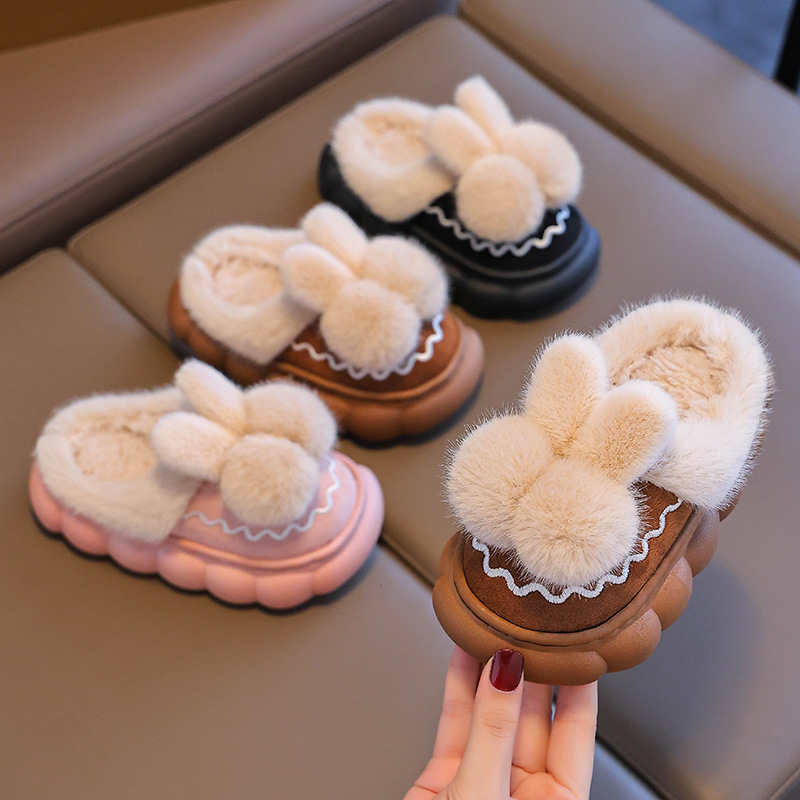Children's Cotton Slippers Winter Boys and Girls Indoor Cartoon Furry Cotton Shoes Non-Slip Baby Infant Home Family Shoes