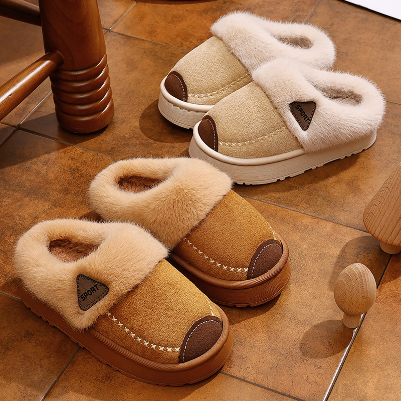 Children's Cotton Slippers with Leather Surface, Waterproof, Soft, Non-Slip, Thick Velvet, Parent-Child Adult Couple, Home Winter Warmth