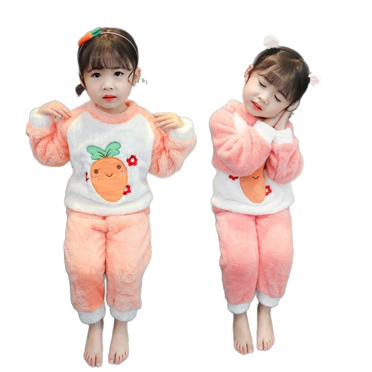 Children's Flannel Pajamas Set Girl's Coral Fleece Home Clothes 1-2-3-4 Years Old Baby Girl 5 Warm Two-piece Set