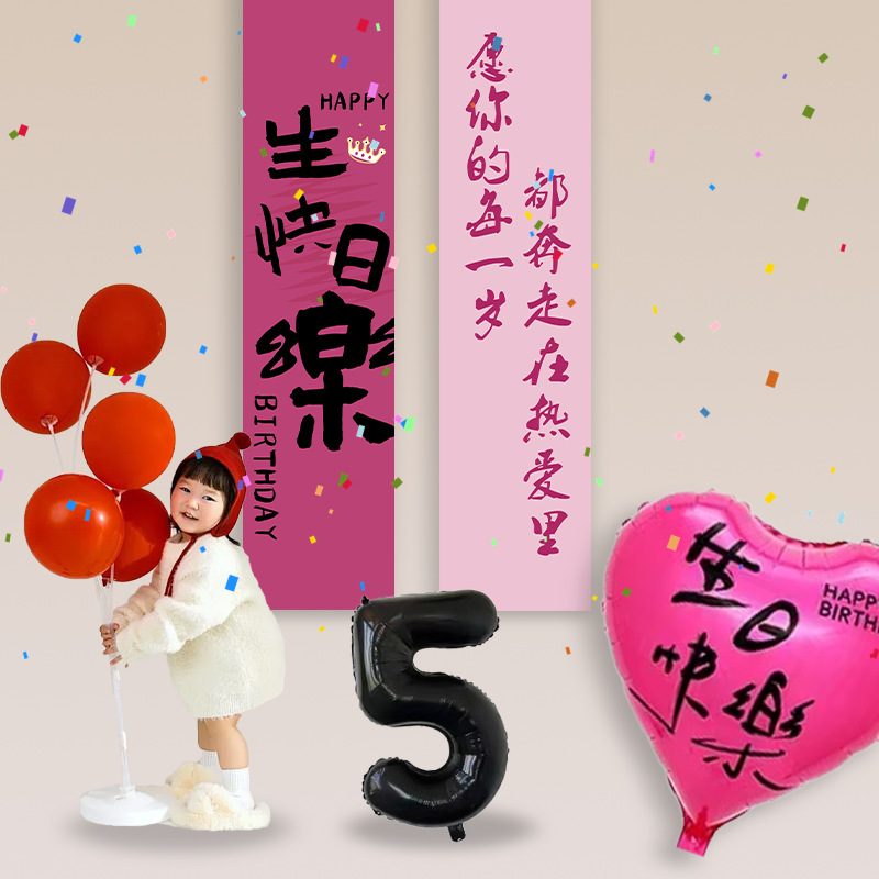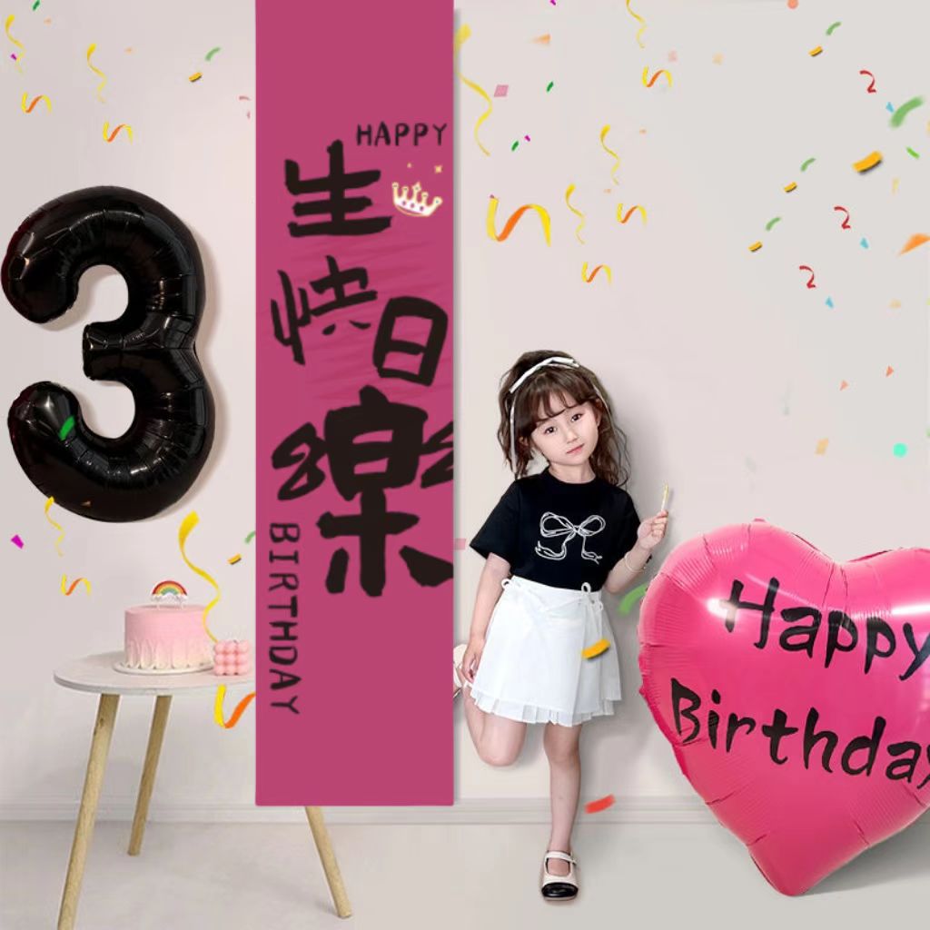 Children's Happy Birthday Decoration Background Cloth Hanging Cloth Boys and Girls One-Year-Old Party Atmosphere Scene Layout Banners