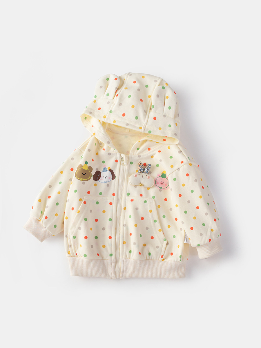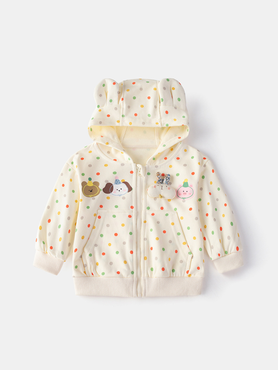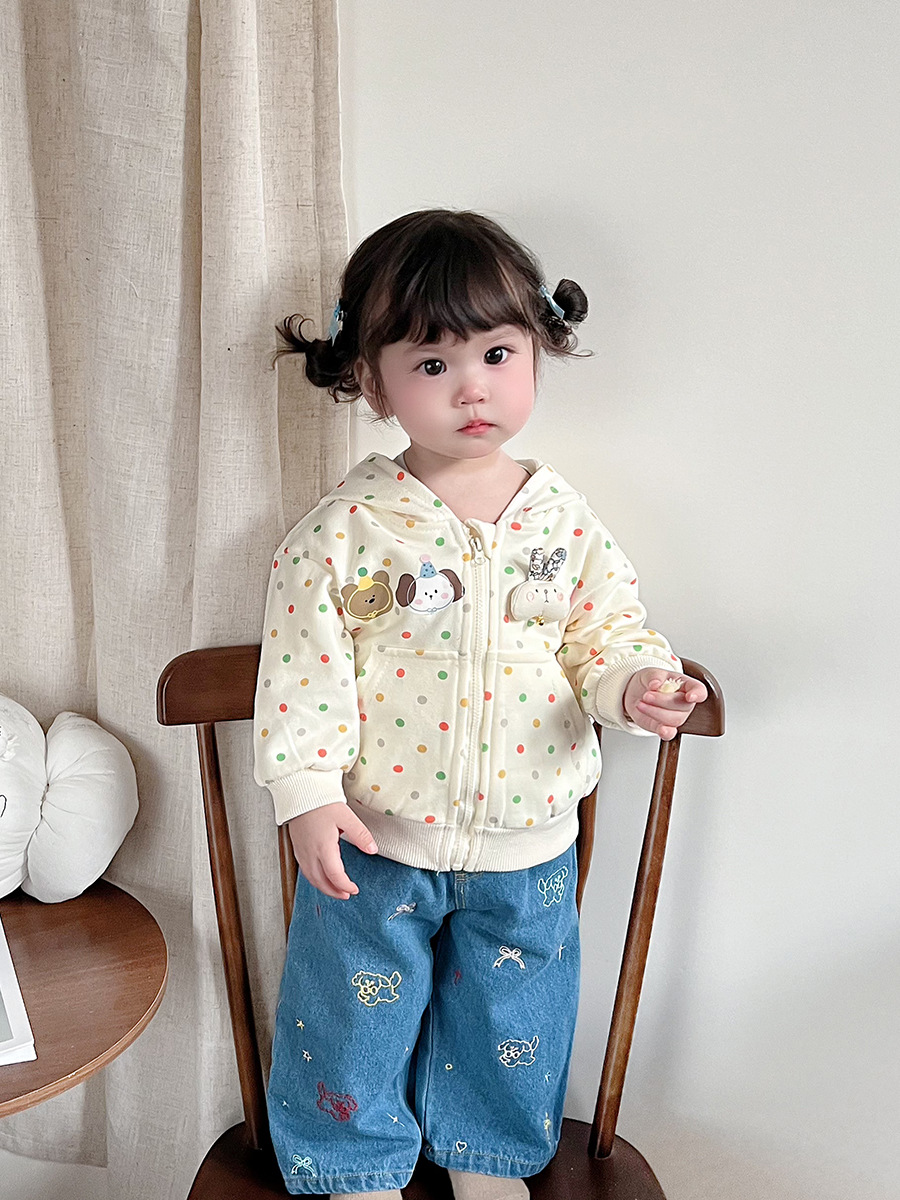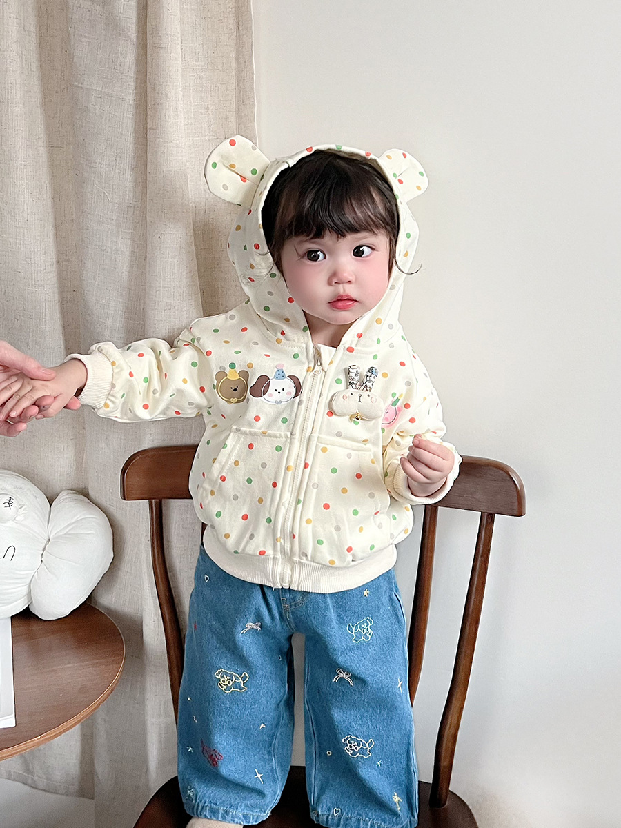 Children's hooded sweater spring and autumn new female baby Korean wave dot cardigan 5010 western style children's western style coat