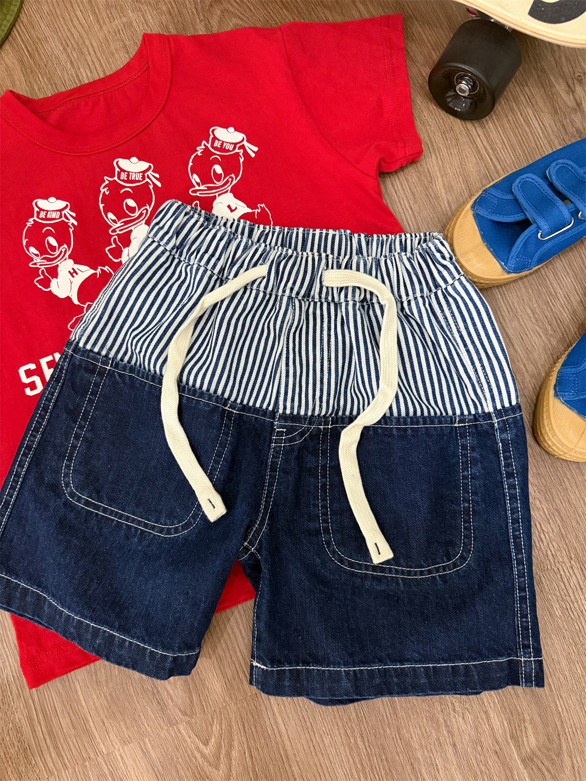 Children's Jeans 2025 Summer New Boys and Girls Casual Striped Denim Shorts Baby Men's Western Style Outer Wearing Pants