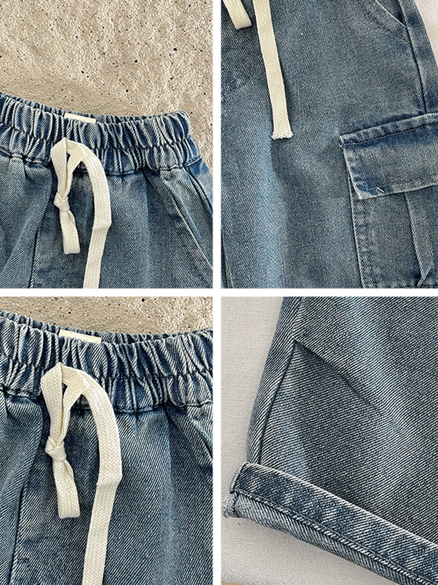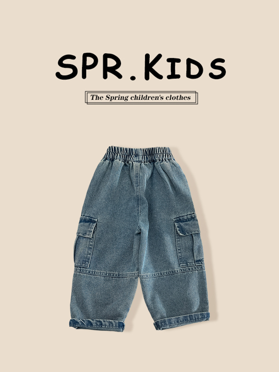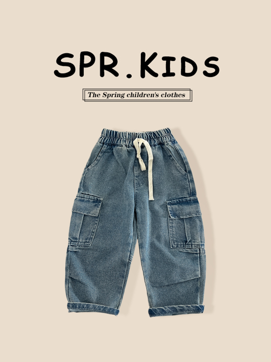 Children's Jeans 2026 Spring New Style Kids' Clothing Cool and Handsome Boys' Multi-Pocket Long Pants Baby Boy Spring Casual Pants