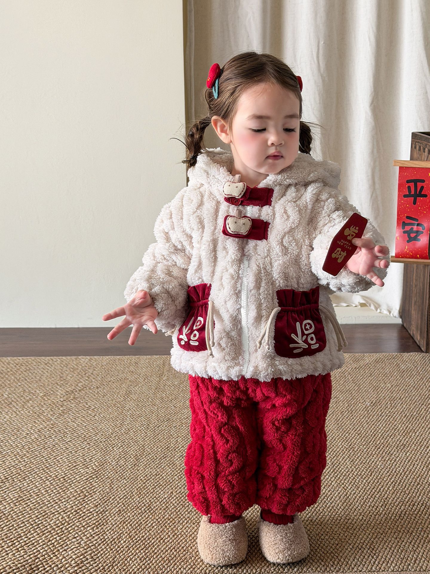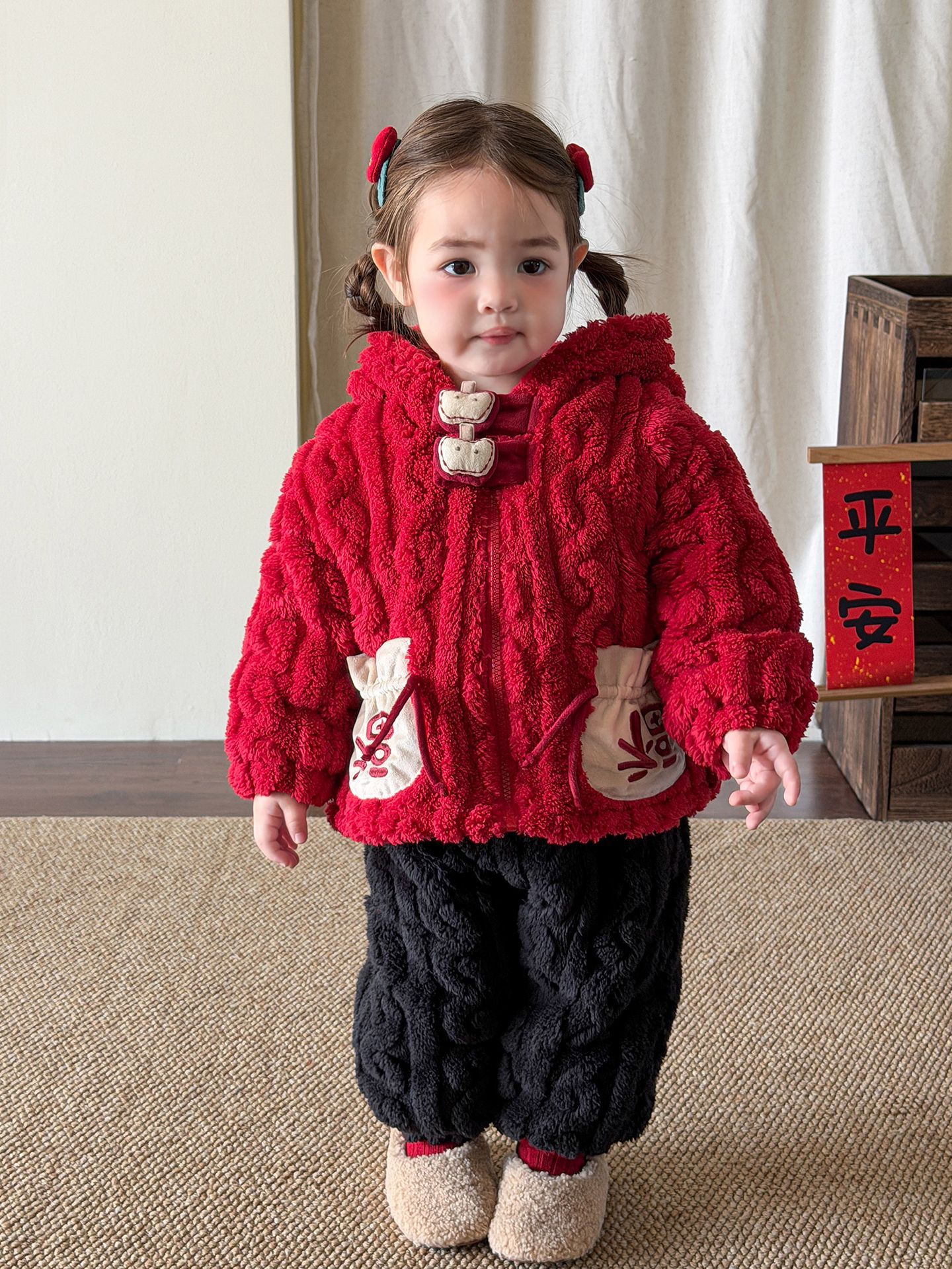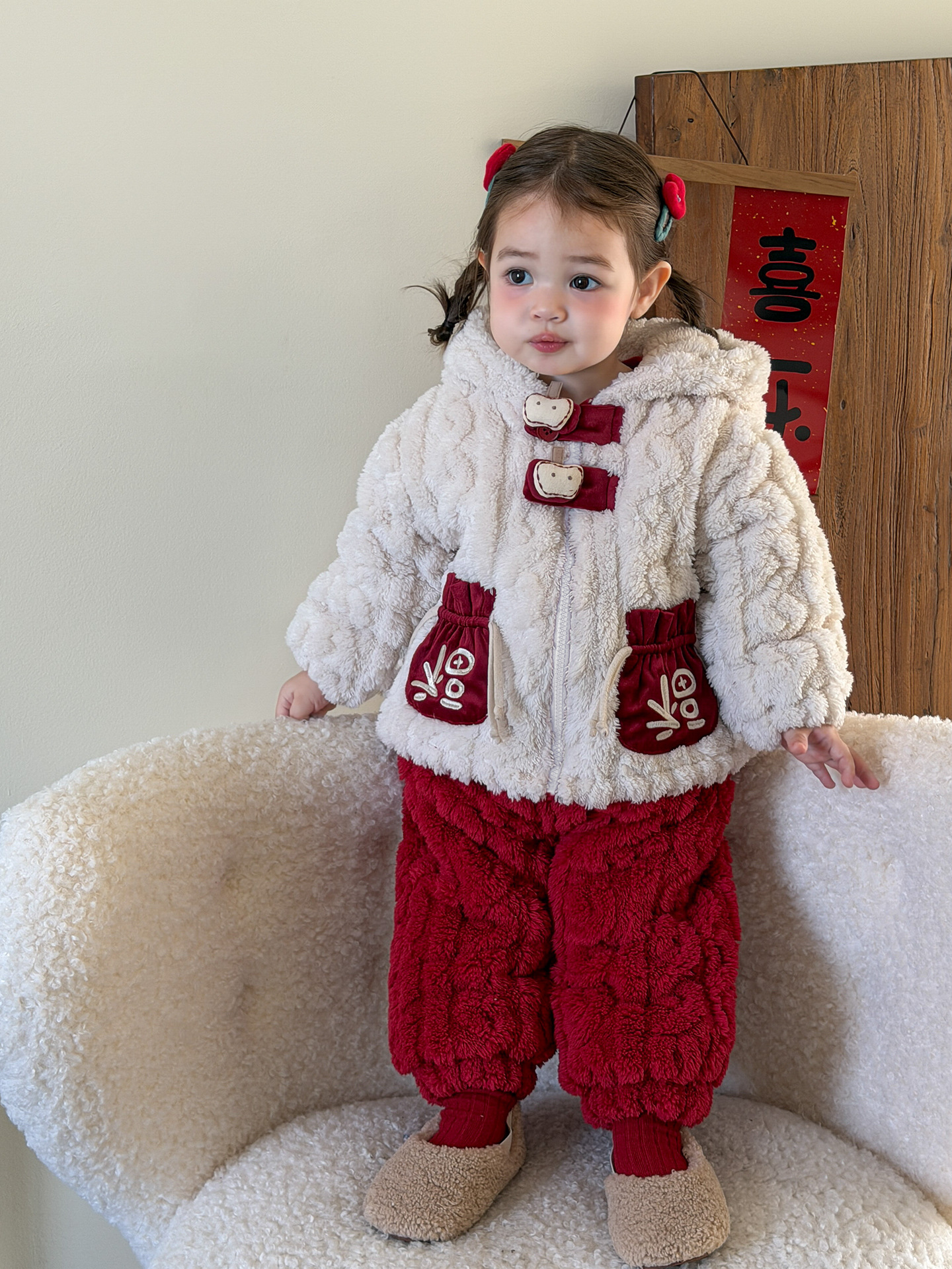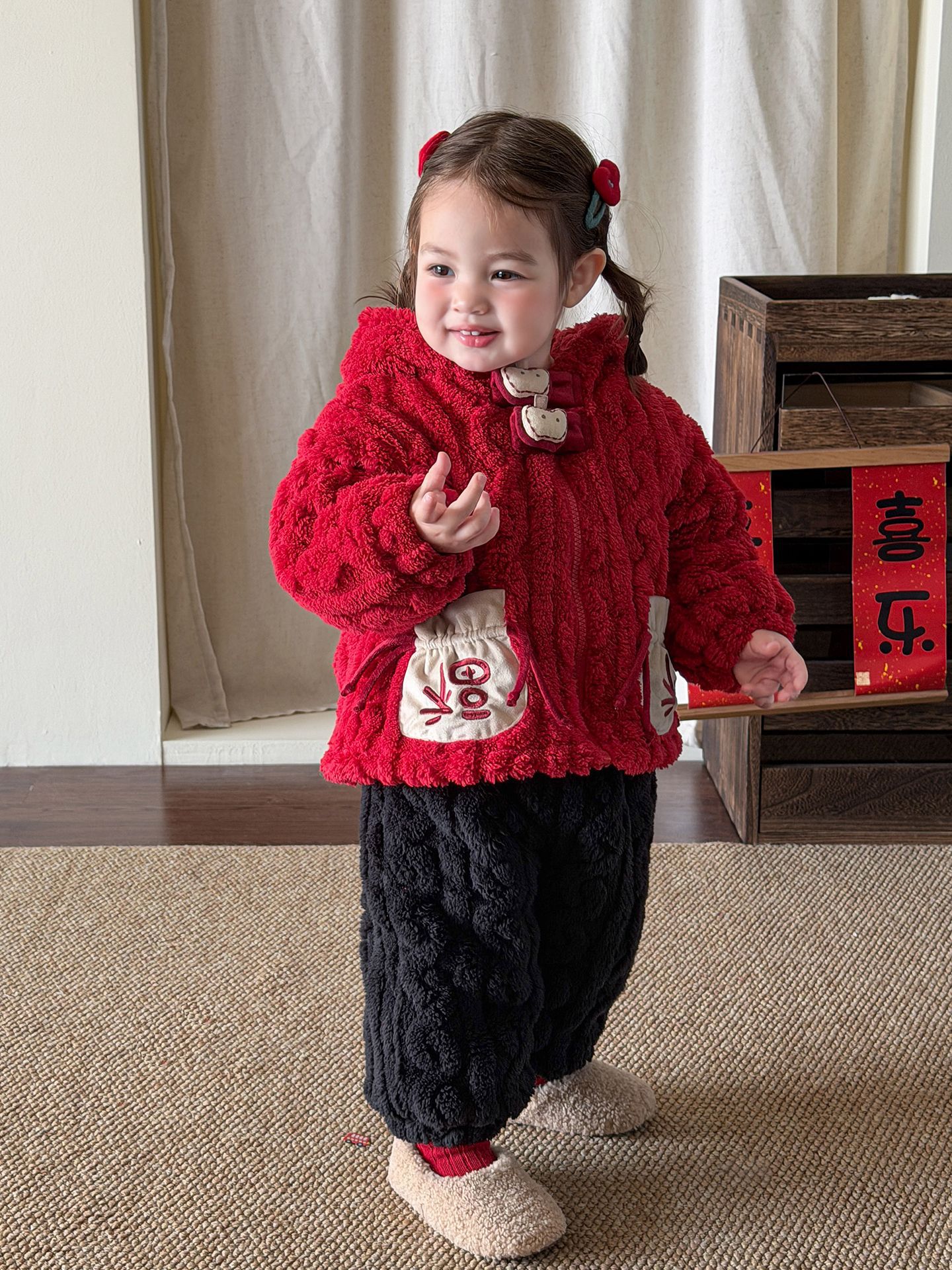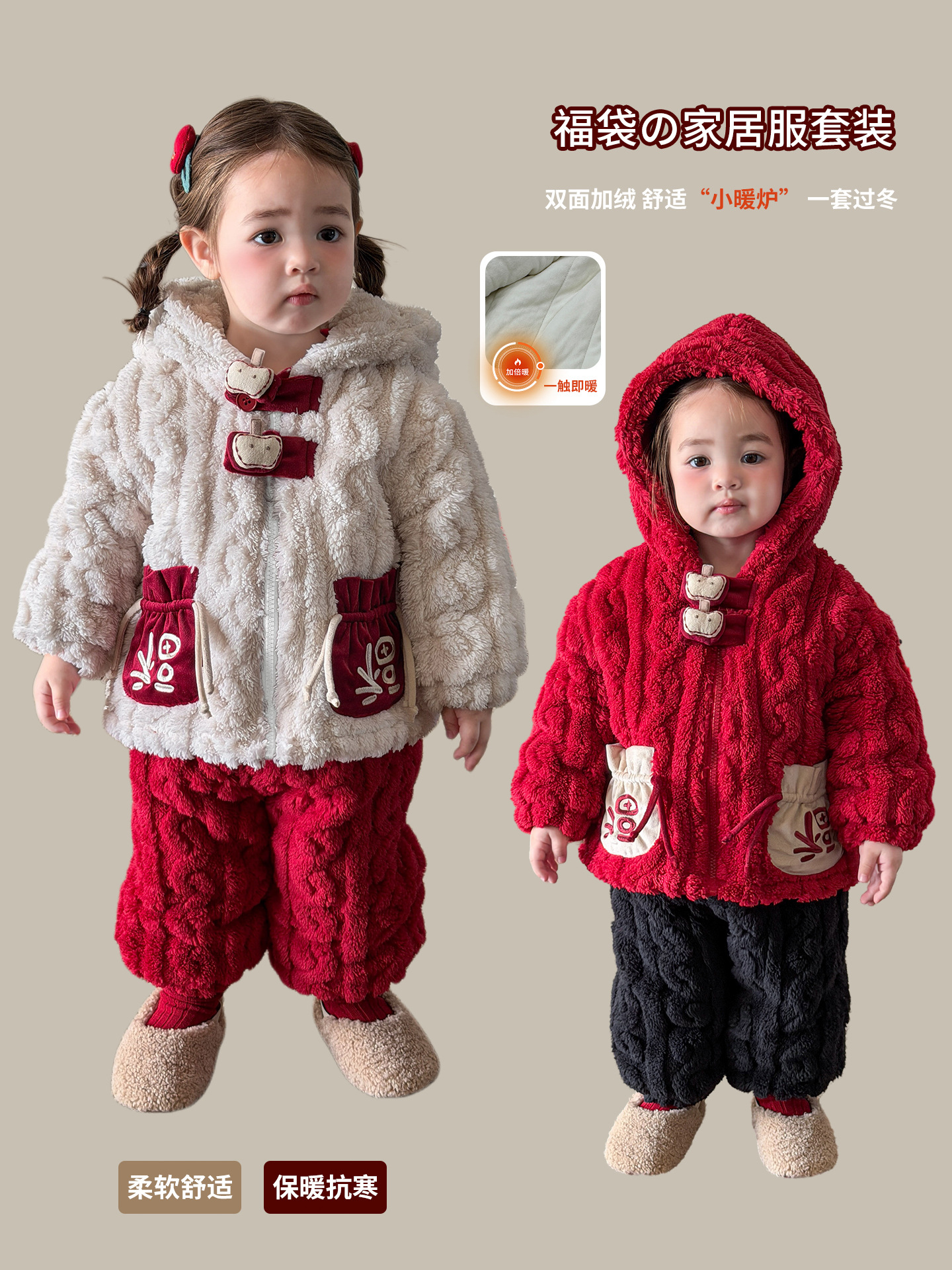 Children's Pajamas 2025 New Winter Thickened Girls' Loungewear Set New Year Outfit Baby Girl Clothes