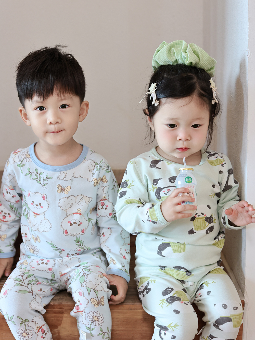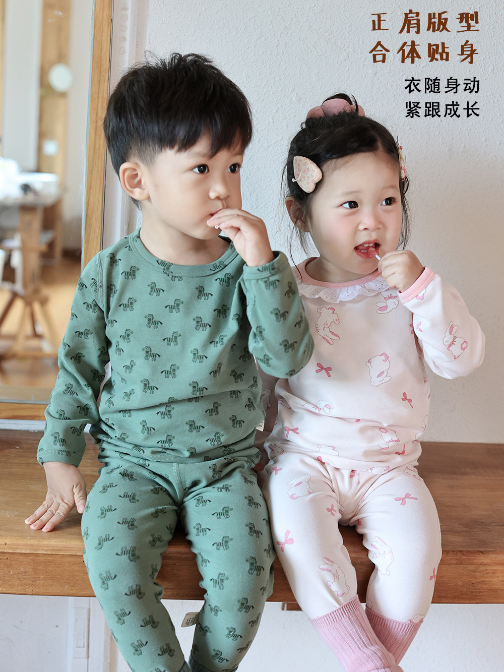 Children's Pure Cotton Pajamas Autum Girls Thickeneded Wool Pull-Up Warm Home Clothes Baby Girl Pajamas Set Autum and Winter