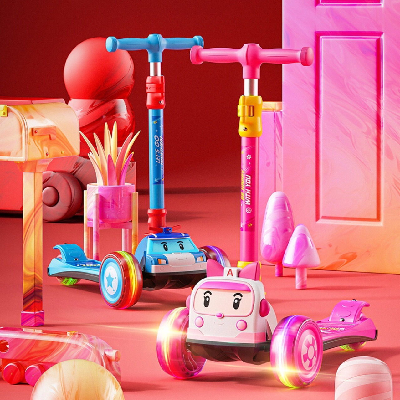 Children's scooter balance car flash scooter three-wheel scooter deformation police car Perly 3-8 years old