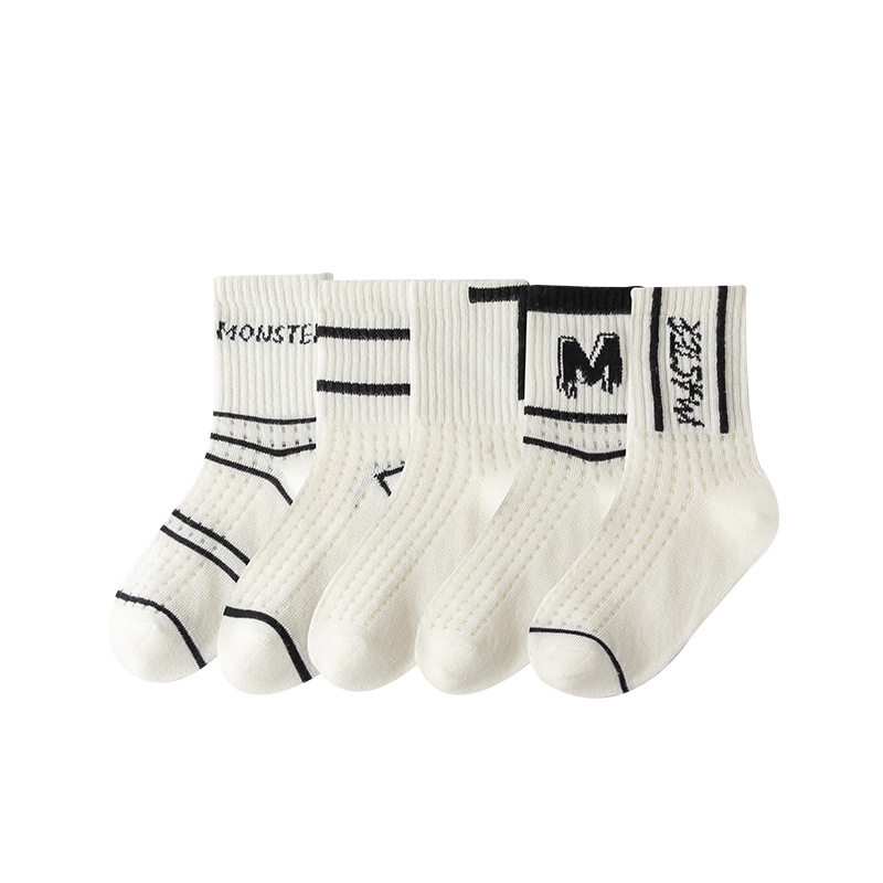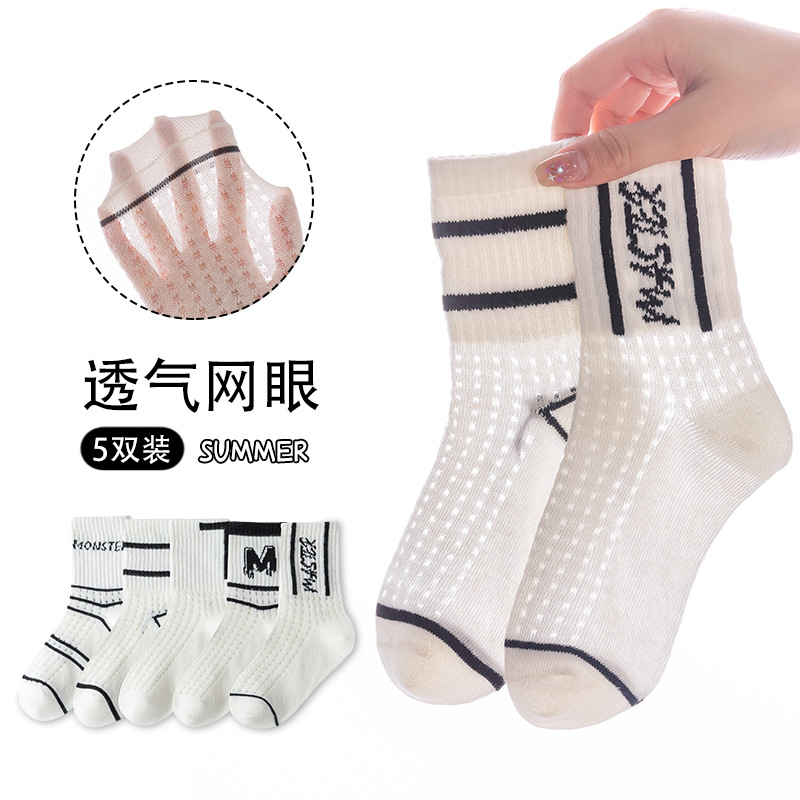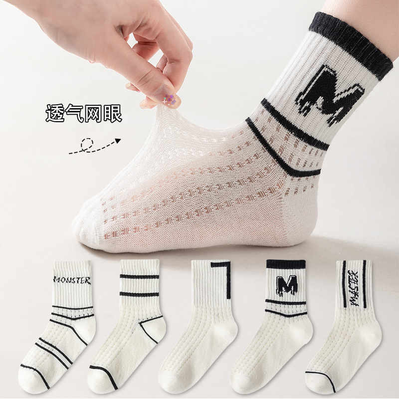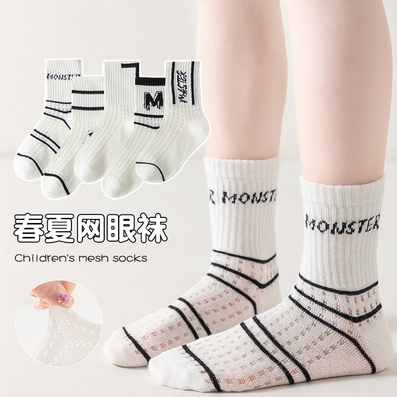 Children's socks spring and summer boys' Korean-style ins mesh socks breathable thin letter fashion socks girls' baby mid-calf length socks