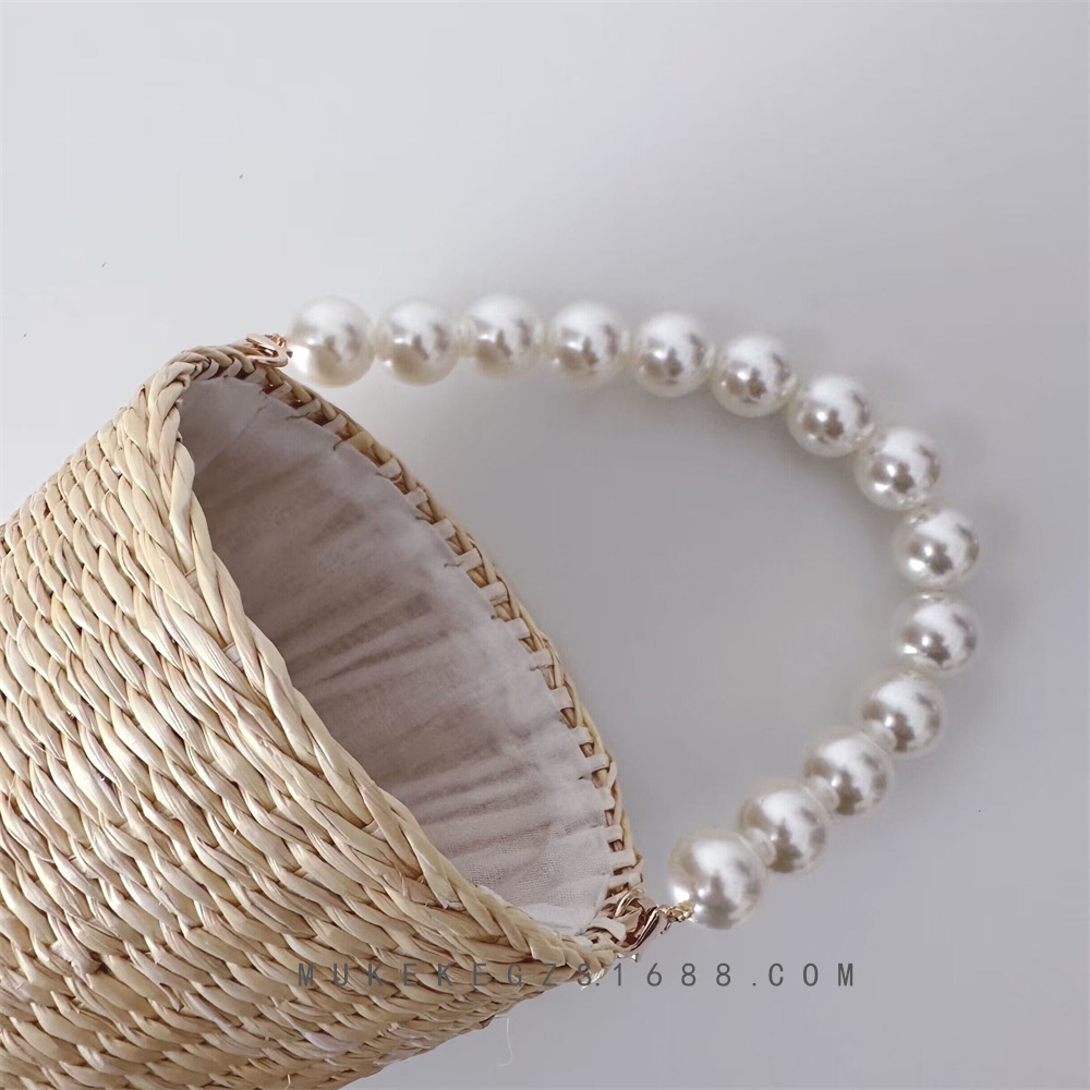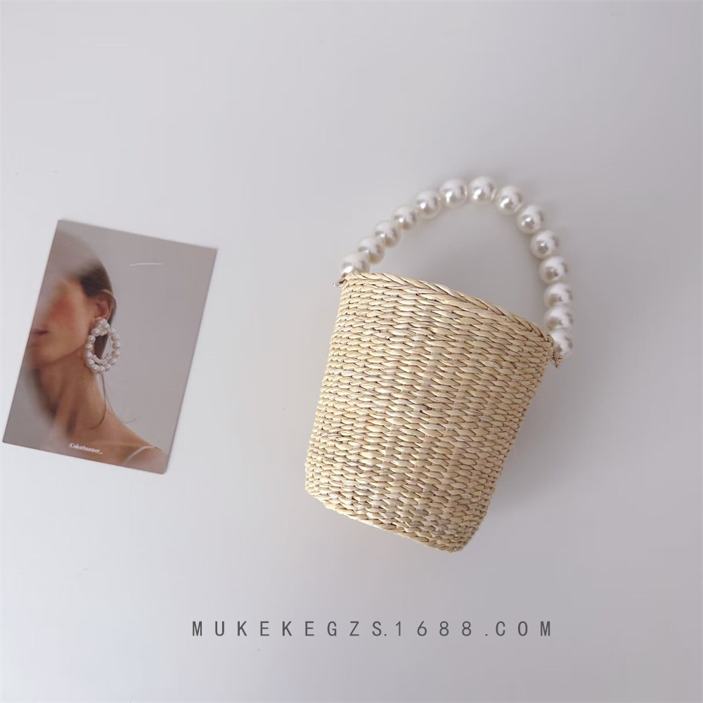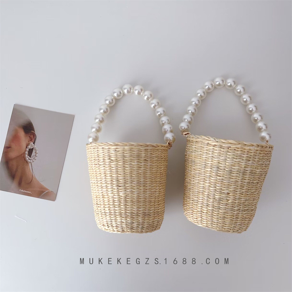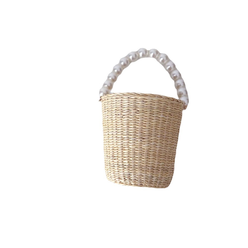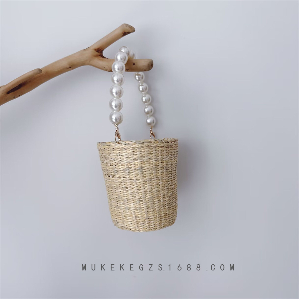 Photo Artifact Children's Straw Bag Lady Style High-end Girls' Big Pearl Bucket Bag with Coin Purse in Hand