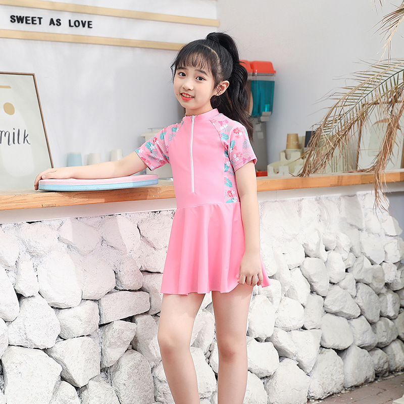 Children's Swimwear Girl's Piece Girls Ins Swimwear Professional Middle and Big Children's Conservative Cute Skirt Swimwear Wholesale