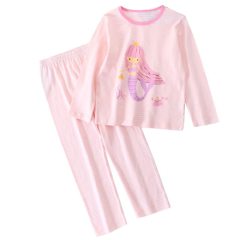 Children's Thin Slub Cotton Pajamas Set Long-sleeved Trousers Air-conditioning Clothing Baby Girl's Long-sleeved Suit Children's Clothing New Product