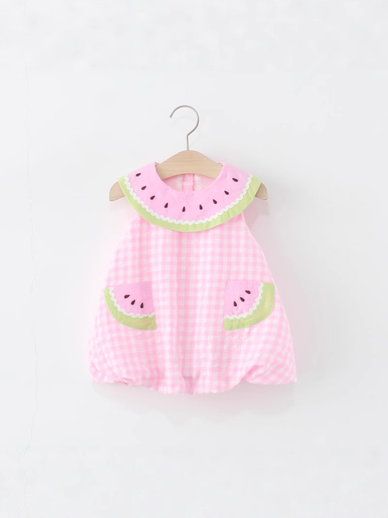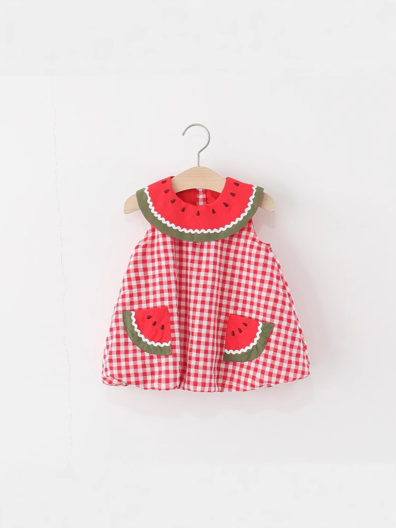 Children's Wear 2025 New Girls' Sleeveless dress Summer Kids Baby Watermelon Collar Plaid Cotton Princess Skirt