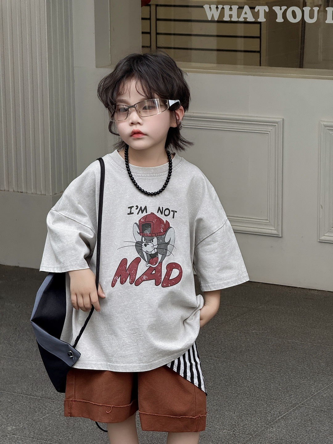 Children's Wear Children's T-Shirt Loose American Cartoon Top Short-sleeved Half-sleeved Boys' Boys' Baby Dressed Fried Color Trendy Cool