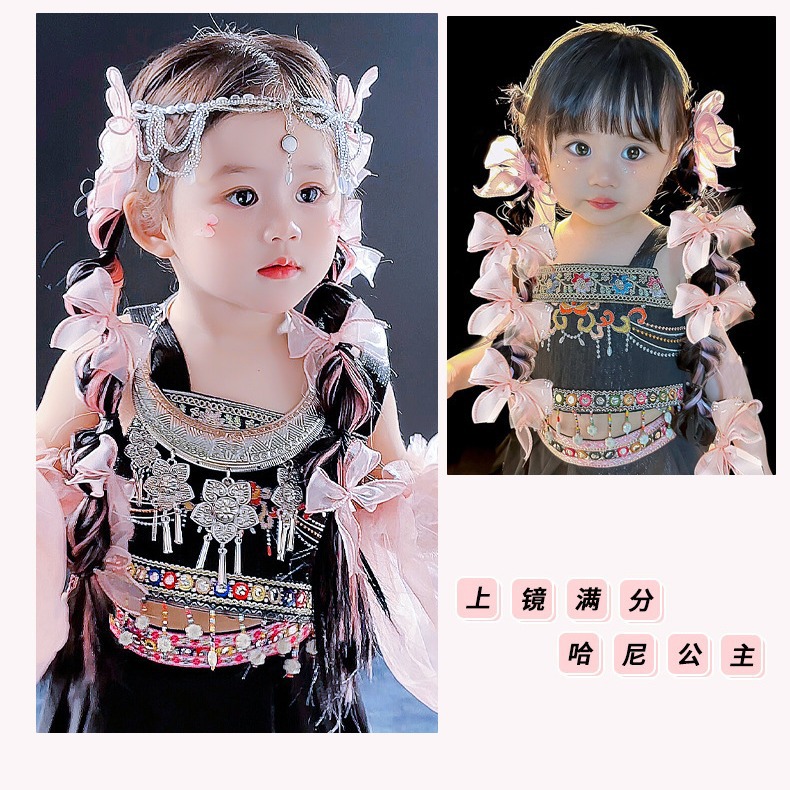Children's Wig Internet Celebrity Hani Princess Wig Braid Sweet Cool Natural Twisted Long Braid Bubble Braid Double Horsetail Wig