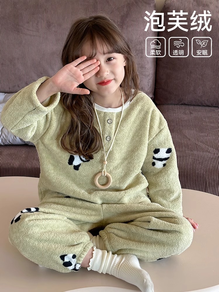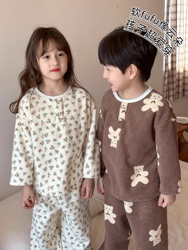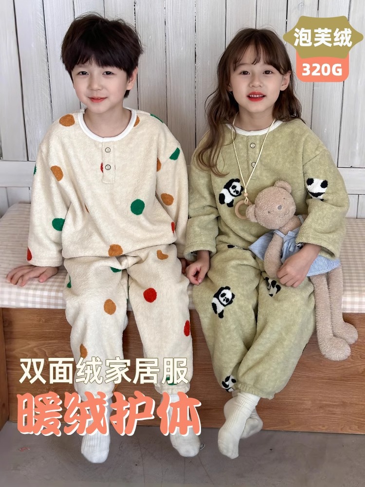 Children's Winter Home Clothes Boys' and Children's Puff Velvet Winter Warm Mid-Big Children's Thickened suit Baby's Winter Pajamas