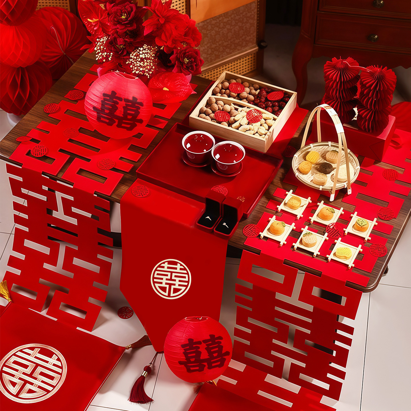 Chinese-Style Wedding Room Coffee Table Decoration Wedding Decoration Tea Ceremony Set Wedding Engagement Banquet Ritual Table Setting Complete Set