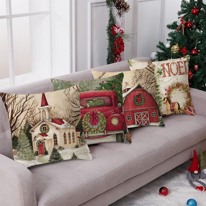 Christmas Pillow Cover Linen Christmas Tree Cross-Border Printing Home Cushion Cover Christmas Living Room Sofa Atmosphere Cushion Cover