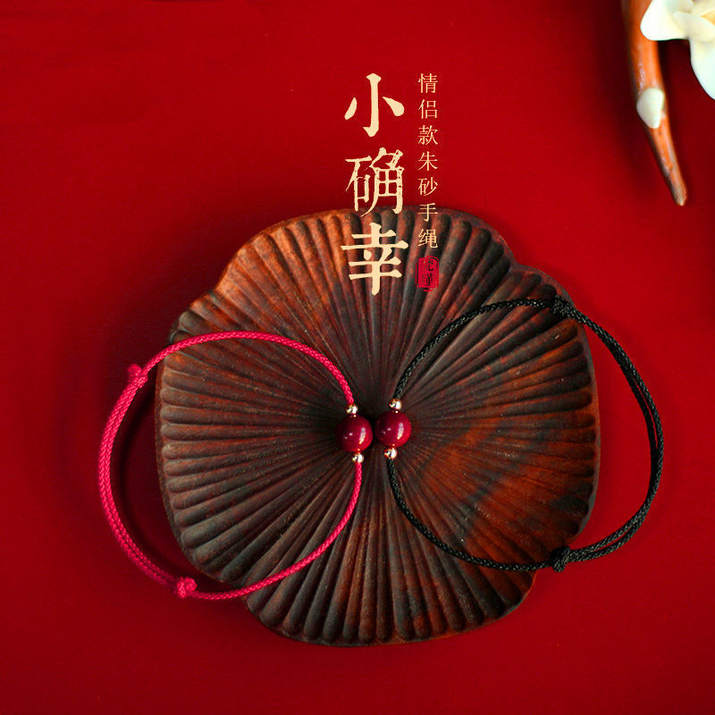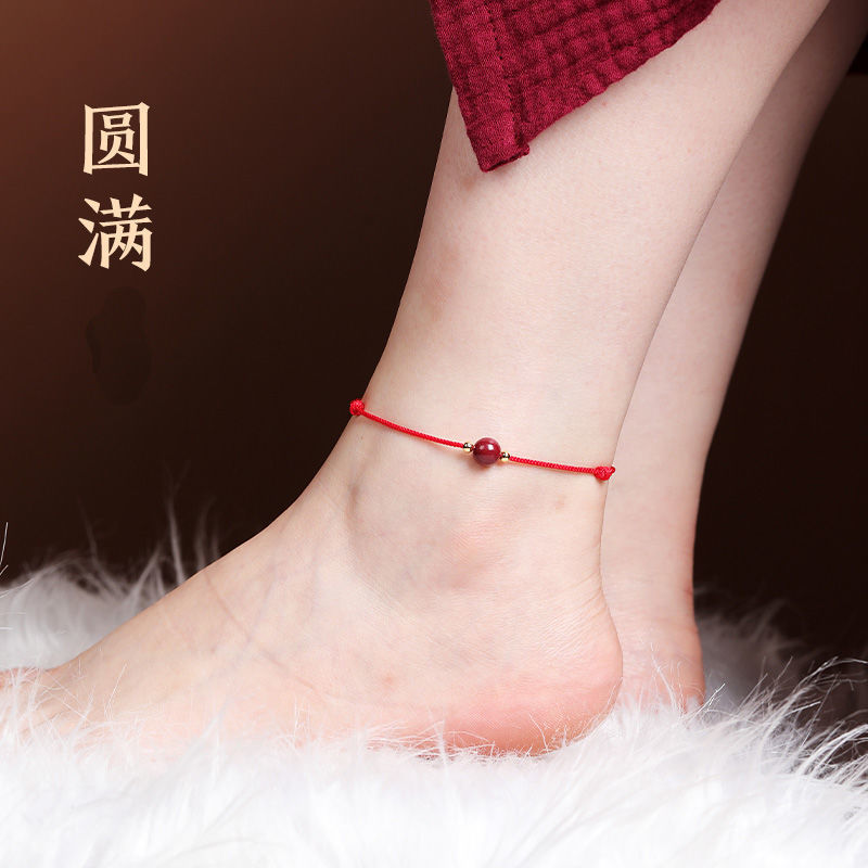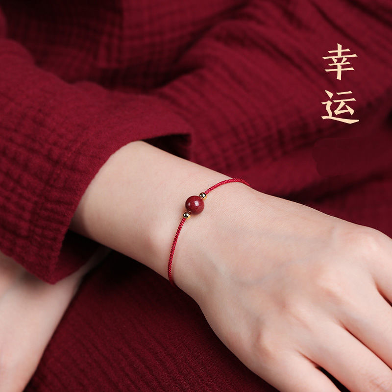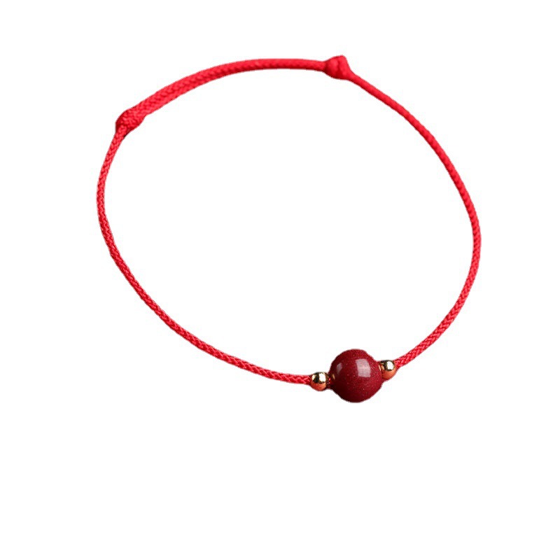 Cinnabar Good Luck Bead Bracelet Handmade Red String Anklet for Women's Zodiac Year Safety Bracelet Couple Style Ins Lucky Bead