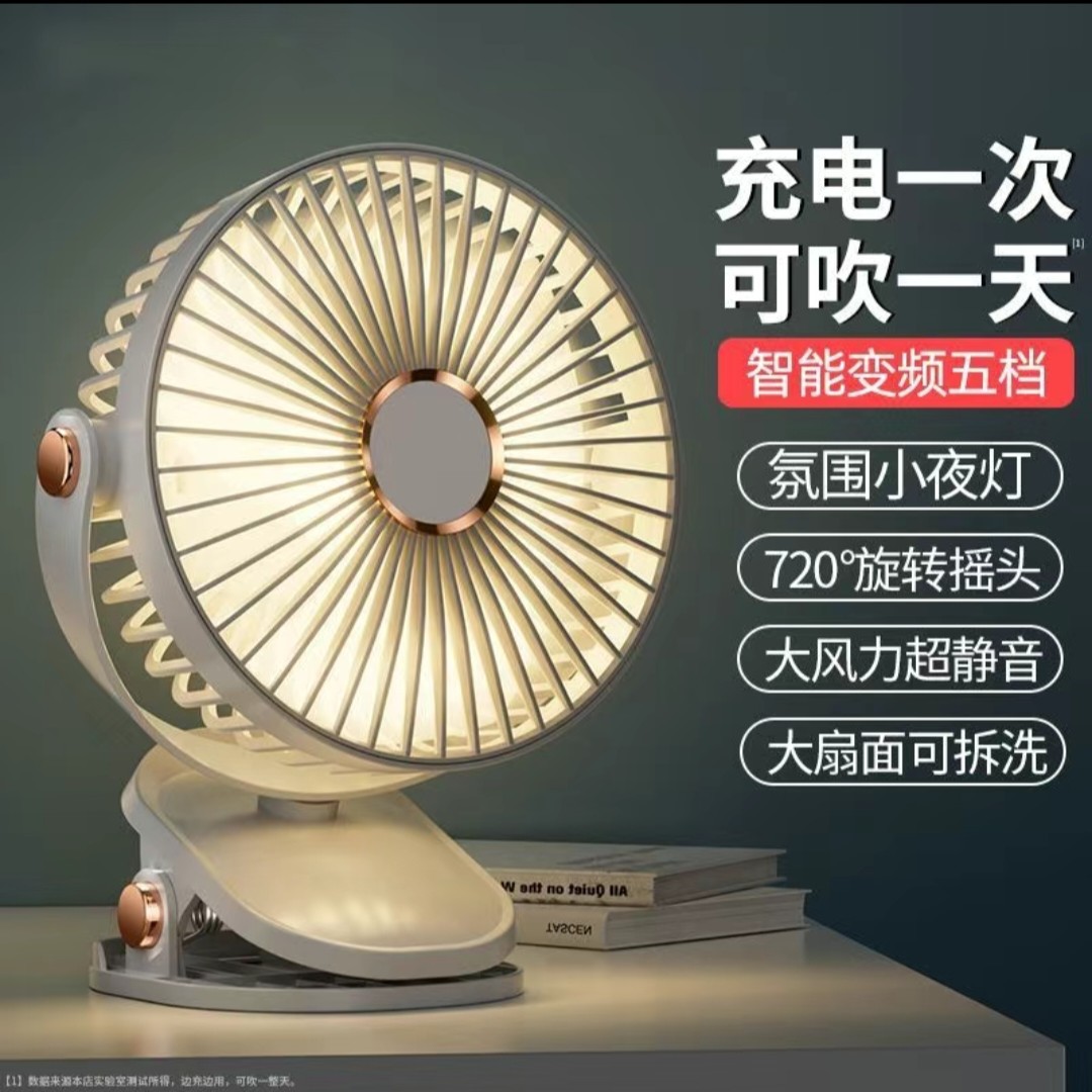 Clip fan multi-function night light fan outdoor small fan camping night light wall mount clip light fan cross border