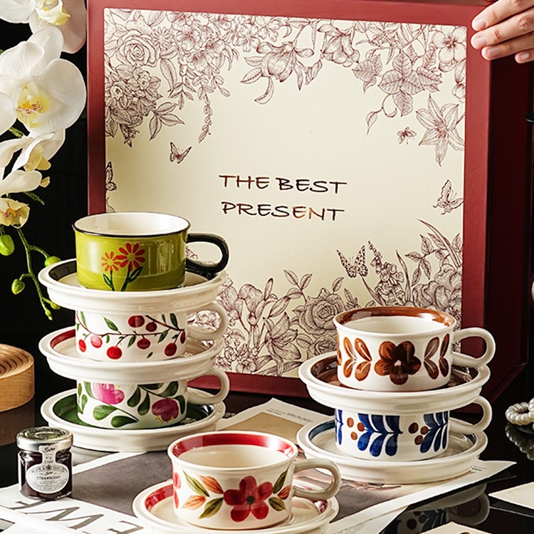 Coffee Cup, Light Luxury, High-Looking Ceramic Cup and Saucer Set, Wedding Gift, New Home Gift, Daily Kitchen and Drinking Utensils