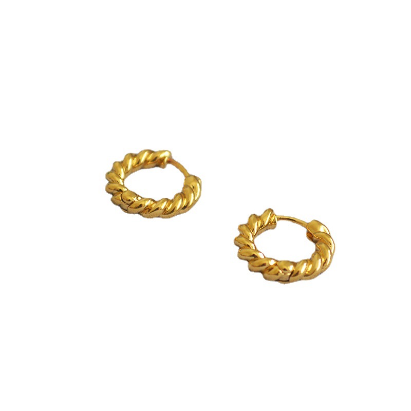 Cold wind Korean original brass gold-plated fashion commuting simple exquisite twist round hoop earrings women